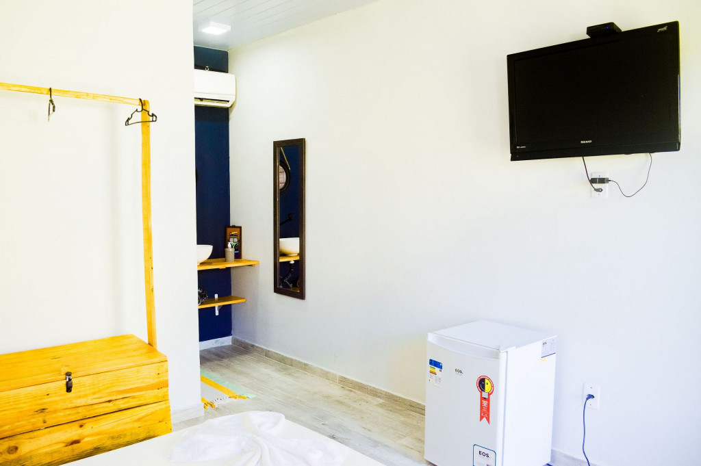 Além do conforto, cada suíte possui Wi-Fi, Ar condicionado, frigobar e banheiro privativo. Também contam com o apoio de uma cozinha compartilhada, equipada com geladeira, fogāo, churrasqueira, sanduicheira, liquidificador, cafeteira, microondas e utensílios básicos. Para este Chalé disponibilizamos 2 toalhas de corpo e 1 de rosto para nossos hóspedes, caso queira acrescentar mais toalhas entre em contato com anfitrião.