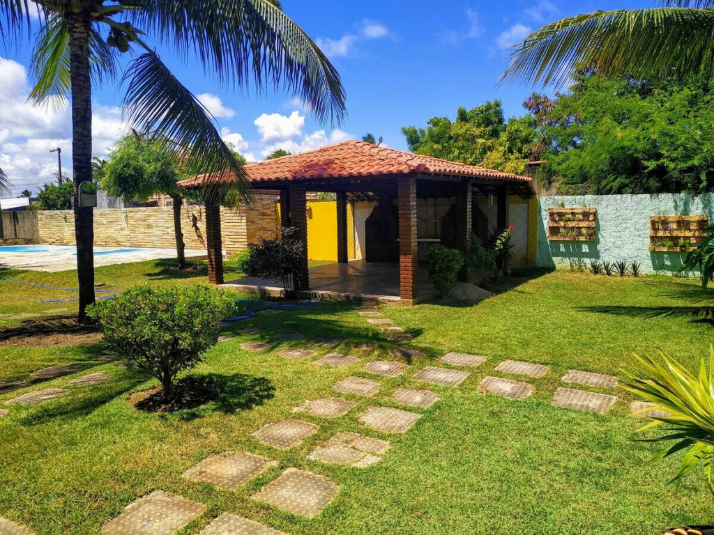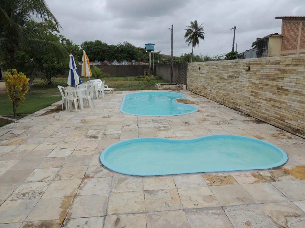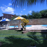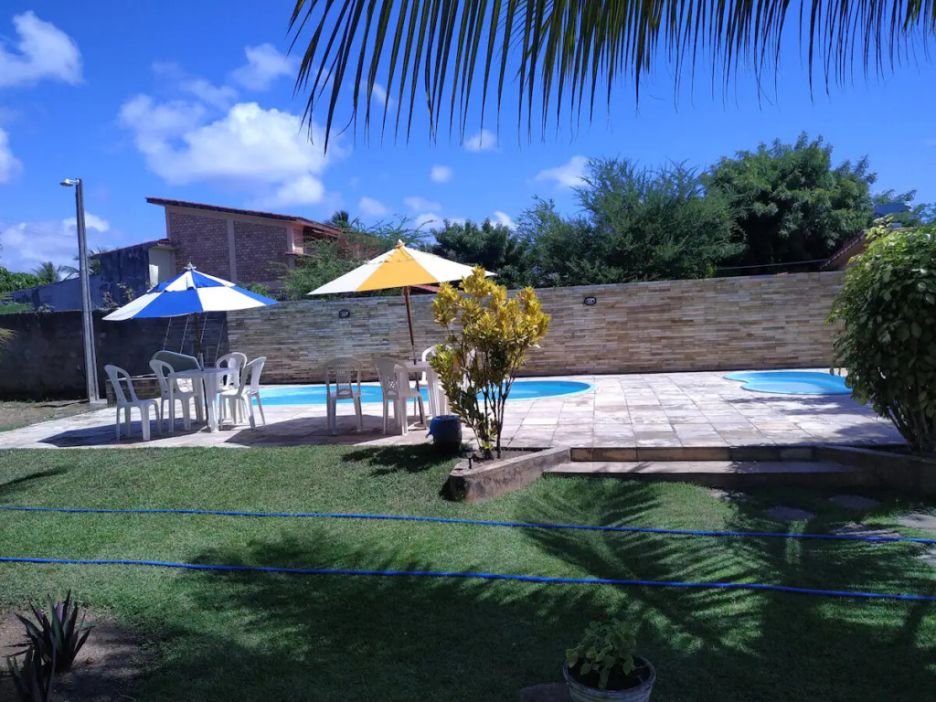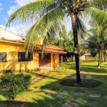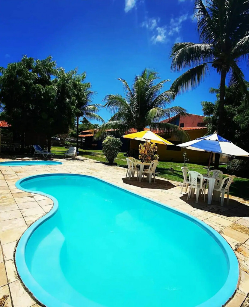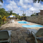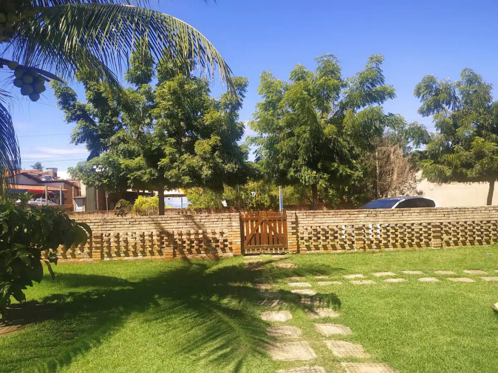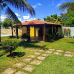 O Chalé está edificado em uma área de 1.440 mts/2 totalmente murados, com piscina adulto e infantil, área coberta com duas churrasqueiras, mesas e cadeiras, coqueiros e muito verde.