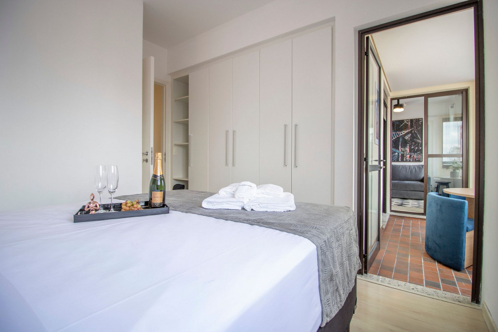 Equipado com uma SmartTV de 43 polegadas, Netflix, Wi-fi de 120 mega, e uma cafeteira Nespresso, você terá todo o conforto como se estivesse em sua casa. O edifício é muito seguro e conta com porteiro 24 horas, seguranças na rua, câmeras de segurança por toda parte, além de academia muito bem equipada, piscina aquecida interna, piscina externa, sauna seca, e vaga na garagem com manobrista.