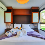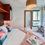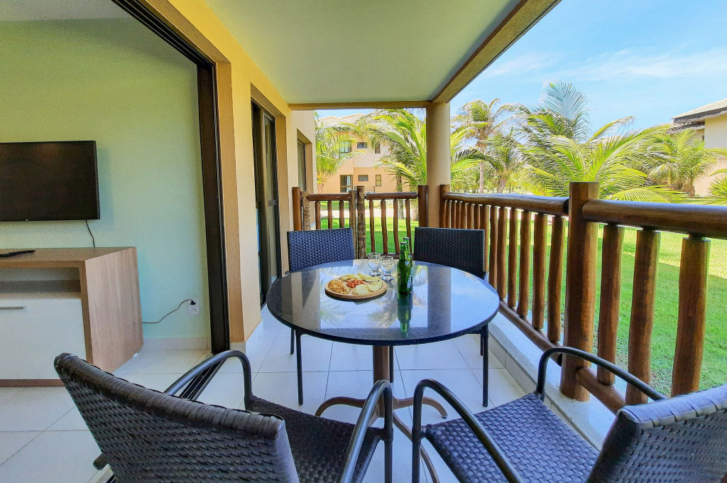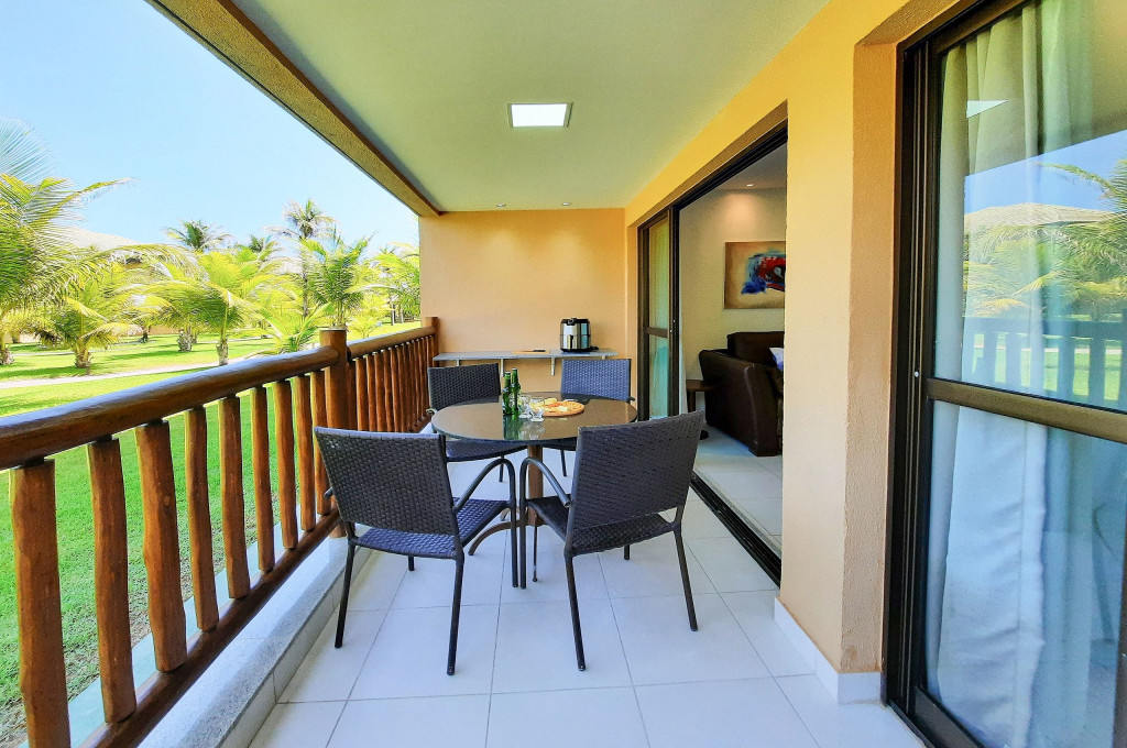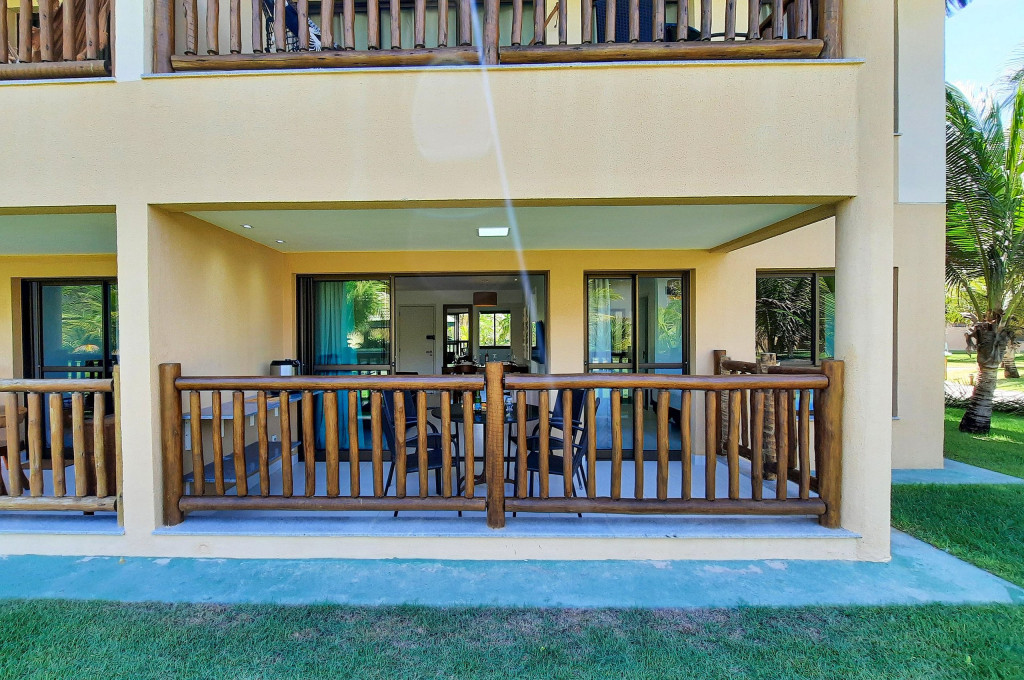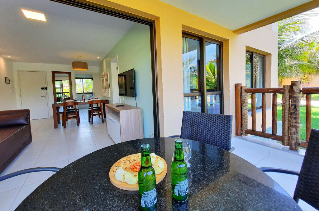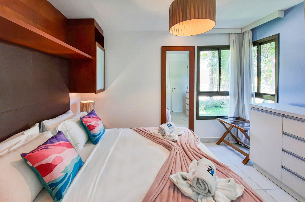 Lindo Bangalô F no VG Sun Cumbuco localizado no térreo,, 2 suítes, 69mts, decoração muito aconchegante. Perfeito para descansar após um dia de praia ou na enorme piscina do complexo. Acomodações: sendo: Suíte Master - Cama Queen, armários, TV Smart e Ar-Condicionado. A outra suíte possui 1 Cama Queen, armários e ar-condicionado. Sala com sofá cama casal e TV Smart. A cozinha é super completa, cooktop, forno, depurador de ar, geladeira frost free, máquina de lavar (lava e seca), airfryer, micro-ondas e utensílios básicos. Cortinas Blackout, Wi-FI de alta velocidade e oferecemos roupas de cama e banho. 2 vagas na garagem. A varanda é ampla, com mobília.