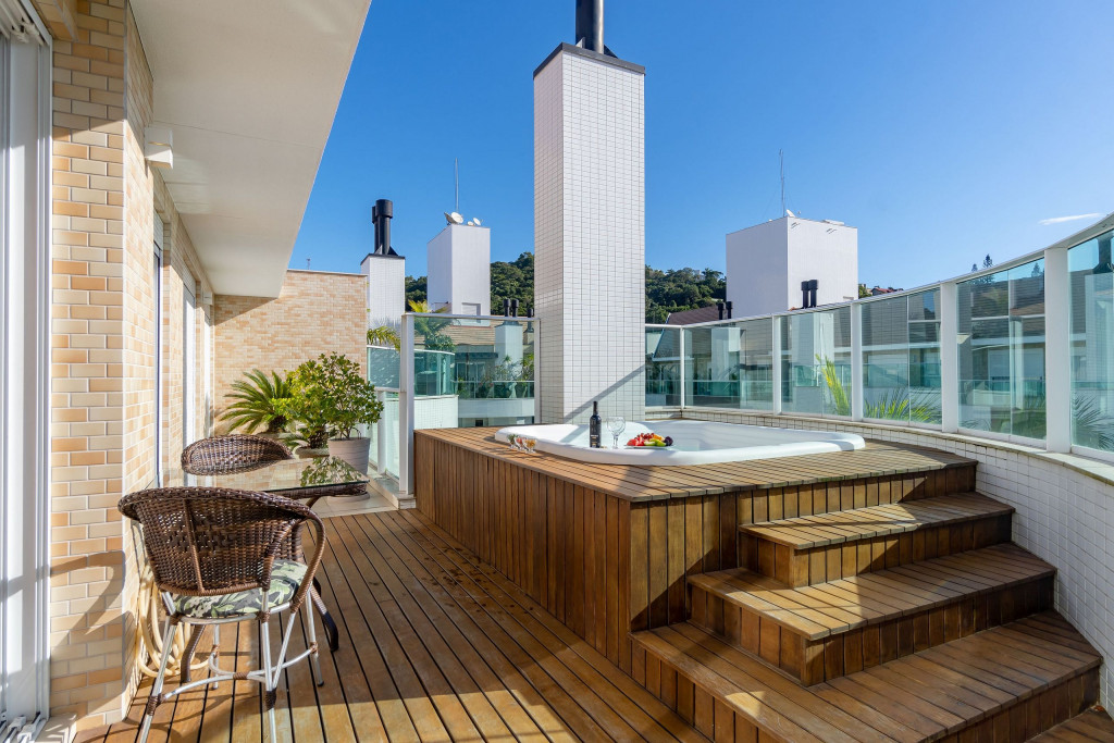 A Cobertura 303-A do Boulevard Bombinhas acomoda até 6 pessoas (capacidade máxima incluindo crianças de qualquer idade) em 3 quartos, sendo uma suíte com cama de casal, quarto com cama de casal e quarto com duas camas de solteiro. Todos dispõem de ar-condicionado. O imóvel possui cozinha completa e equipada, sala de estar e jantar, banheiro, toilette e sacada com jacuzzi (não aquecida) e churrasqueira. (Solicite inventário completo para nossa equipe).Para comodidade de nossos hóspedes, também oferecemos: