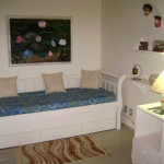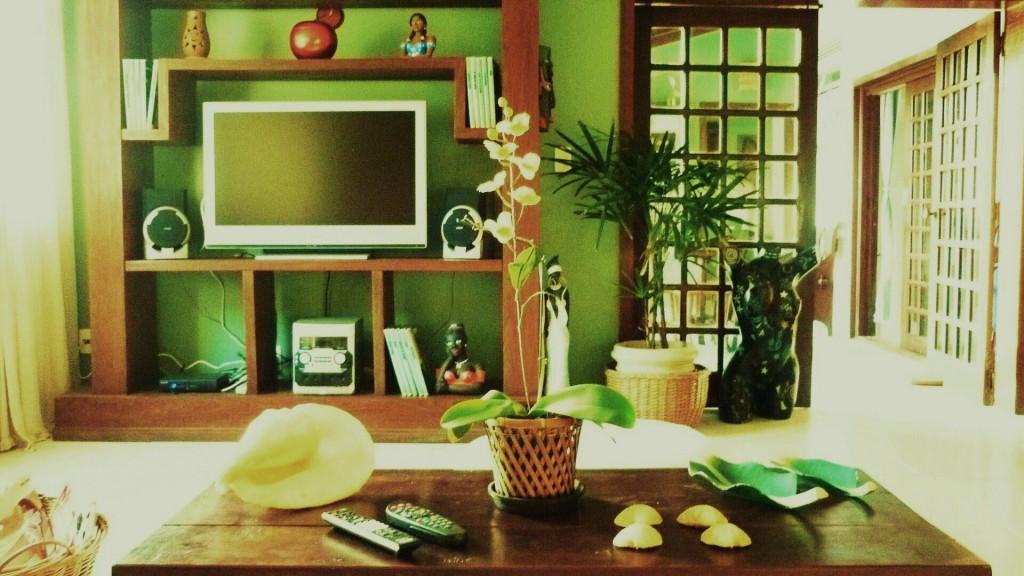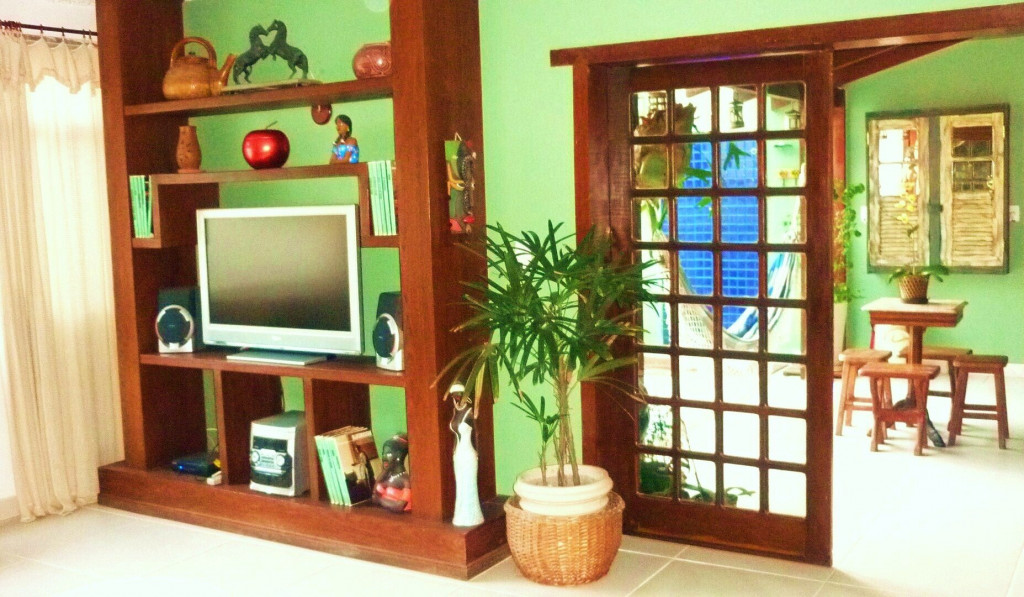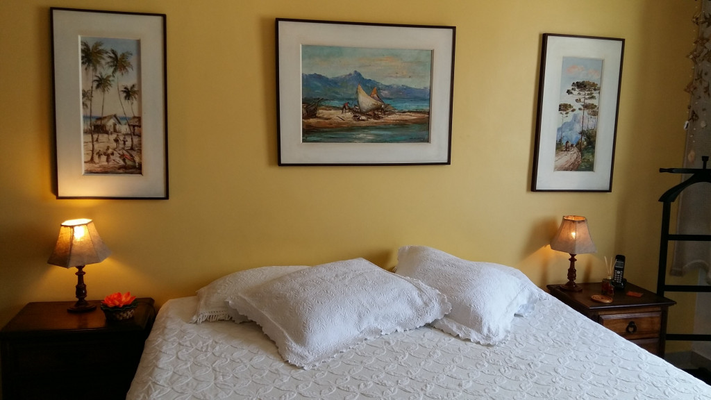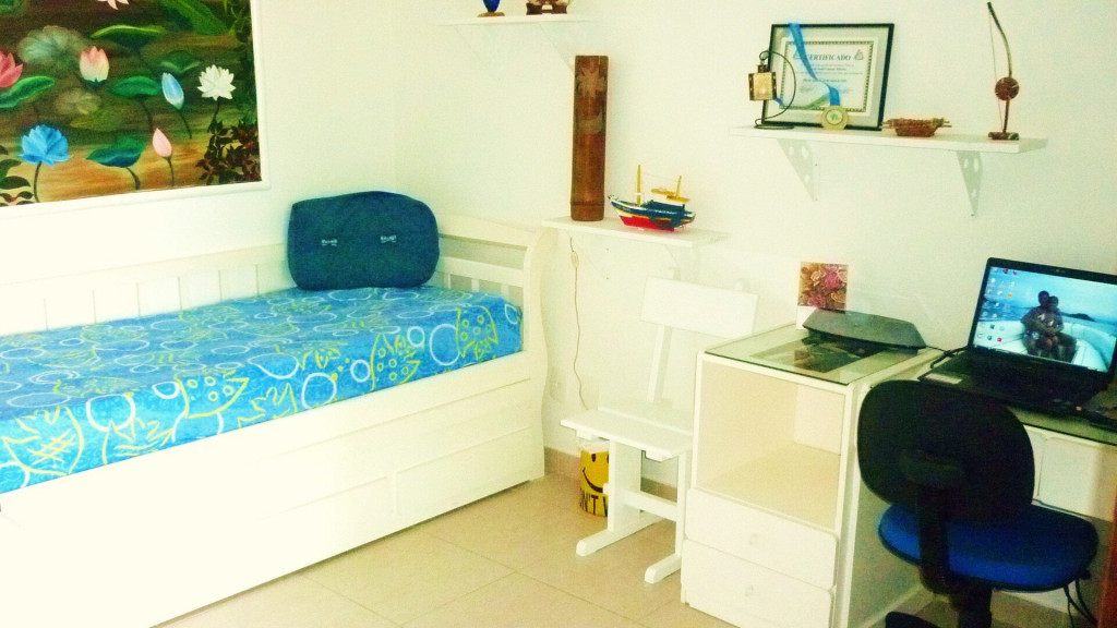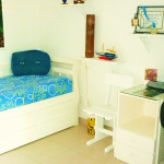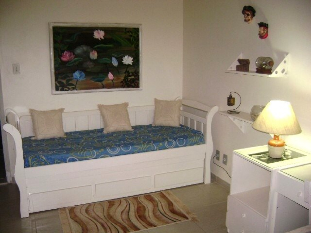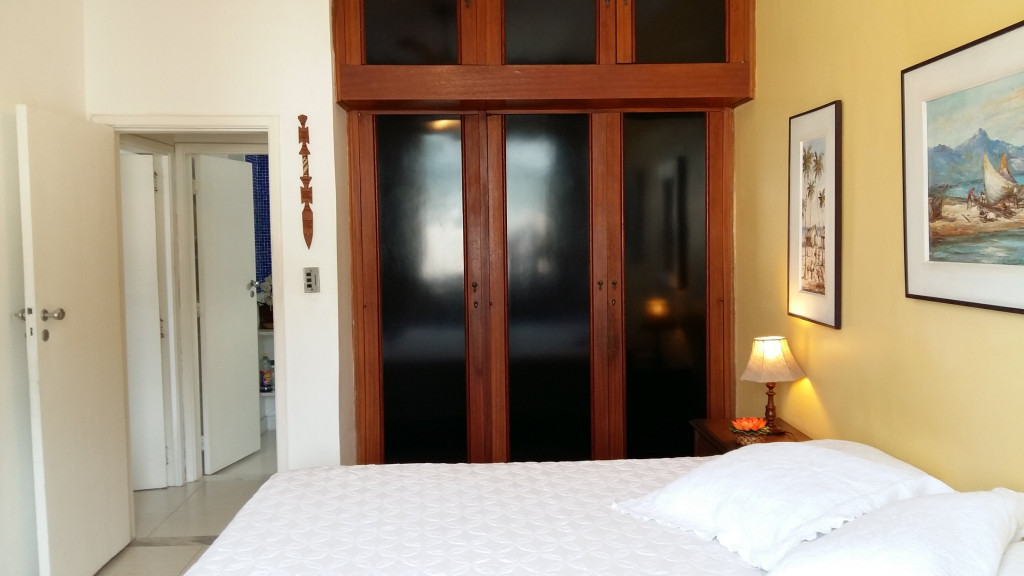 Quatro suítes sendo que três delas com cama de casal king size , vista para o mar, amplos armários, todas com ar condicionado e ventiladores de teto , a quarta suíte com duas camas de solteiro . Roupa de cama e banho.