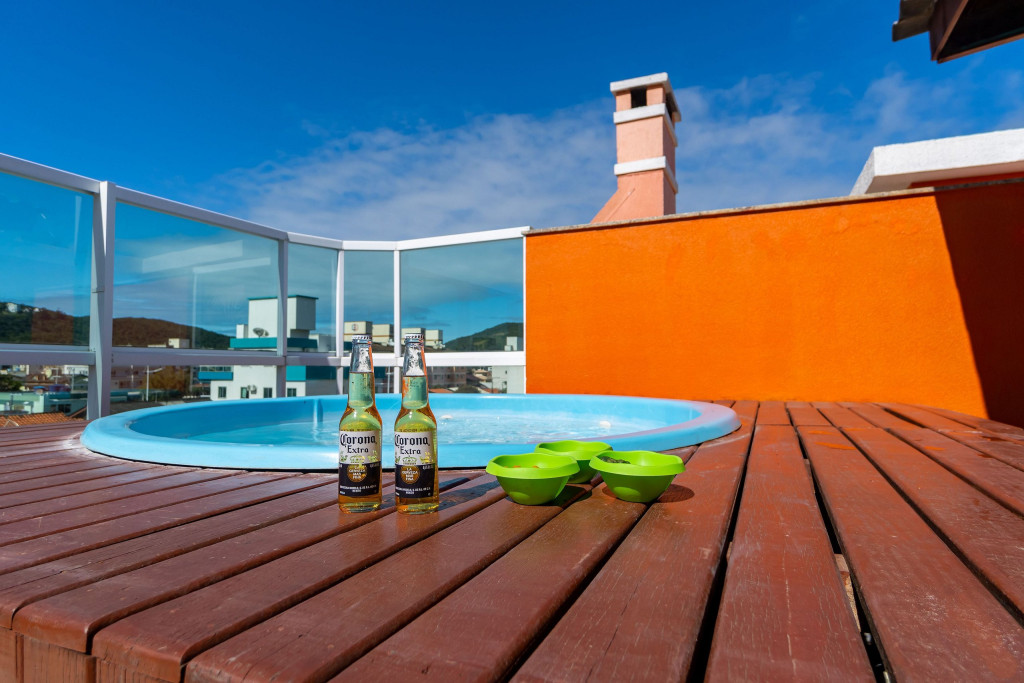 A cobertura 202 no Residencial Califórnia acomoda até 10 pessoas (capacidade máxima incluindo crianças de qualquer idade) em 05 dormitórios, sendo uma suíte com cama de casal e ar condicionado e 04 quartos com cama de casal. O imóvel possui cozinha completa e equipada, área de serviço, sala de estar, sala de jantar, 02 banheiros e terraço com churrasqueira, piscina e vista para a rua. (Solicite inventário completo para nossa equipe).Para comodidade de nossos hóspedes, também oferecemos:- Wi-Fi com excelente velocidade;