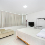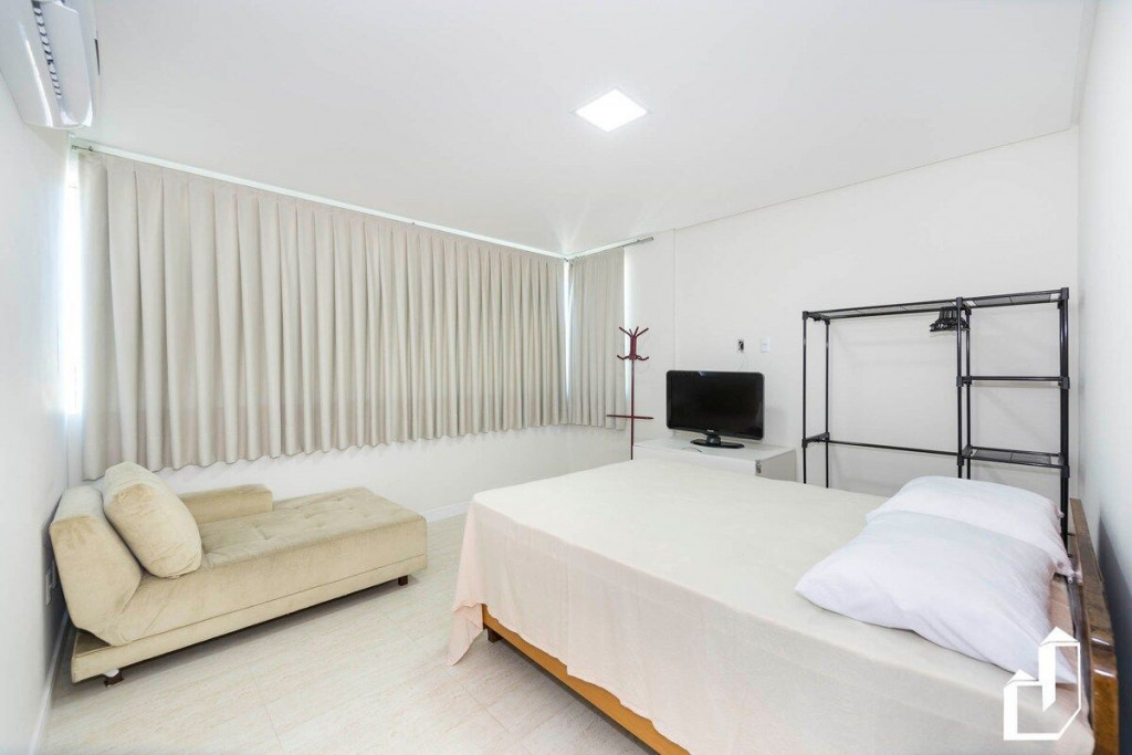01 suíte com cama de casal + 01 cama auxiliar de solteiro e ar-condicionado quente/frio;