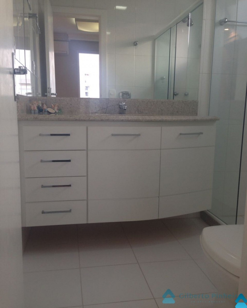 Cobertura para locação temporada no Centro de Guarapari composta de 2 pavimentos. Primeiro pavimento com sala de estar/jantar, 1 quarto, banheiro social, cozinha, área de serviço, dependência completa de empregada e uma excelente área externa com churrasqueira e spa. O segundo pavimento com 3 quartos sendo 3 suítes, 2 com closet e 1 escritório, 2 vagas de garagem, elevador.