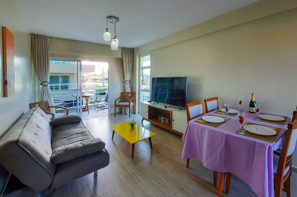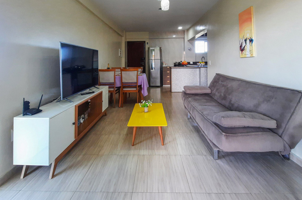 Confortável apartamento no Beach Place Cumbuco, 2 quartos, sendo 1 suíte e 1 quarto triplo com 70 m², localizado no 1º andar (posição poente, faz sobra a tarde por conta do outro bloco na frente), ao lado da piscina, perfeito para descansar após um dia de praia. Os quartos possuem Ar Condicionado e Cortina Blackout. Sala com sofá, TV Smart e Wi-Fi de alta velocidade. A cozinha é super completa, com máquina de lavar.