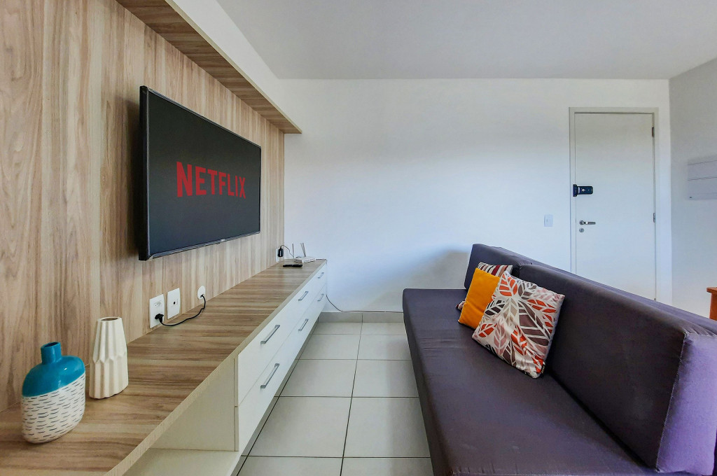 - Sala com Sofá Cama e TV Smart