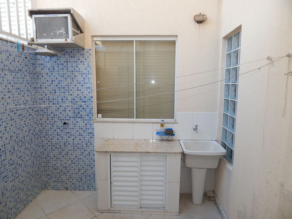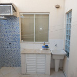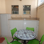[Área de serviço] Mesa, tanque de lavar roupas e toldo.