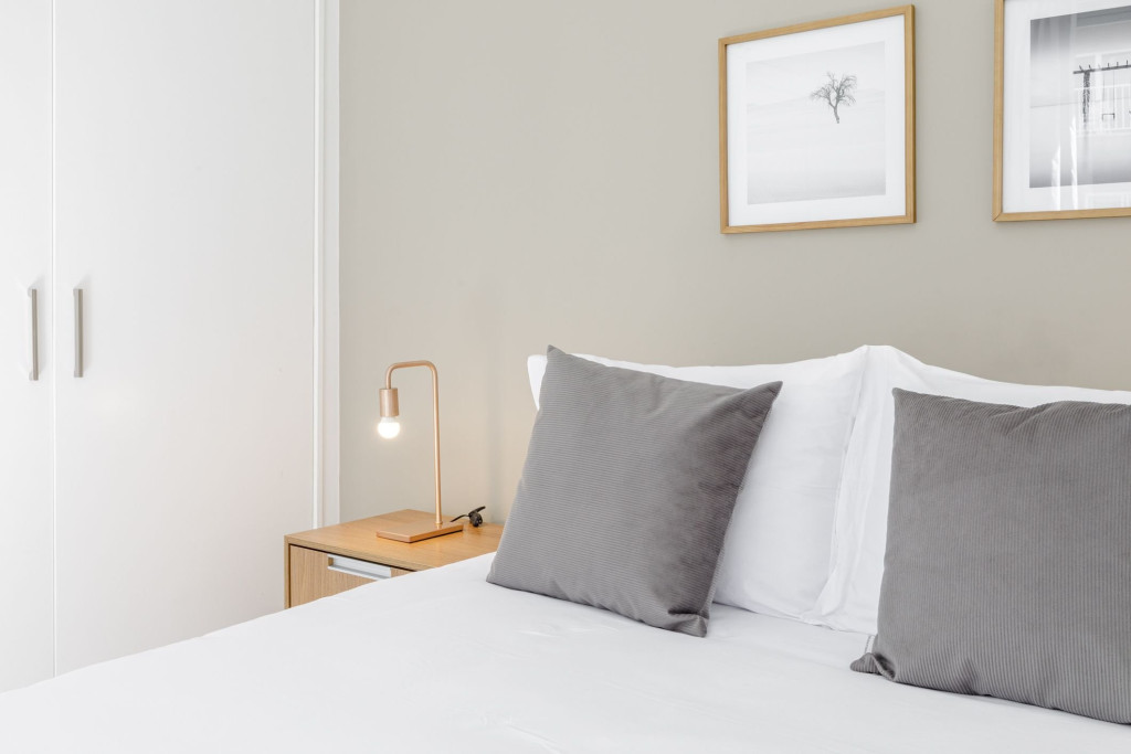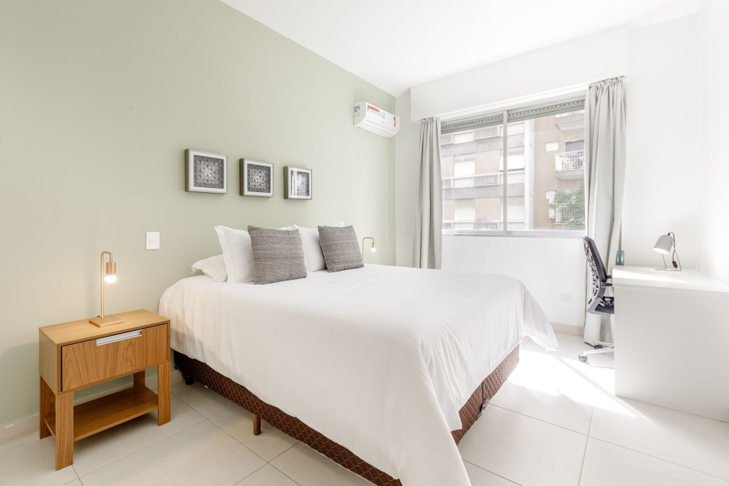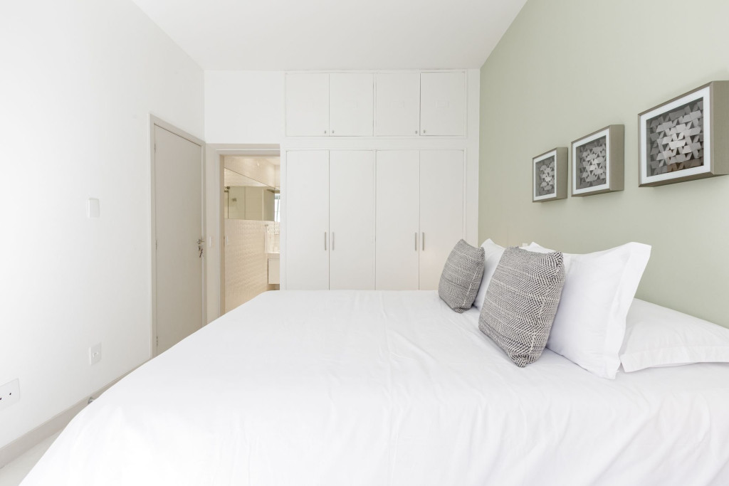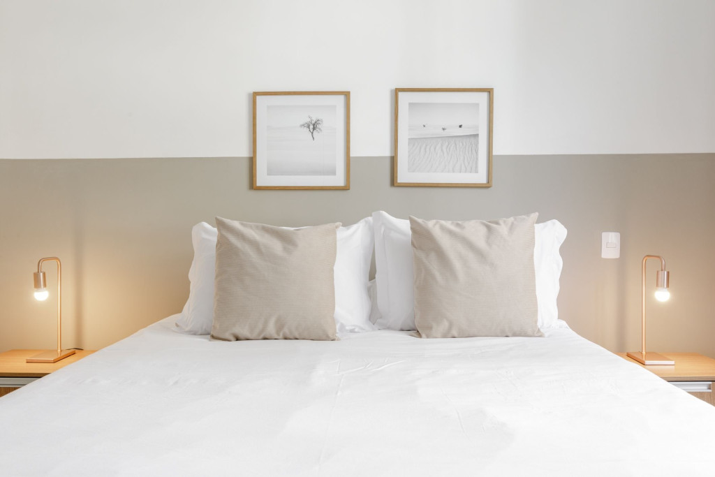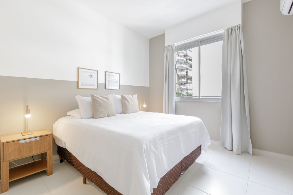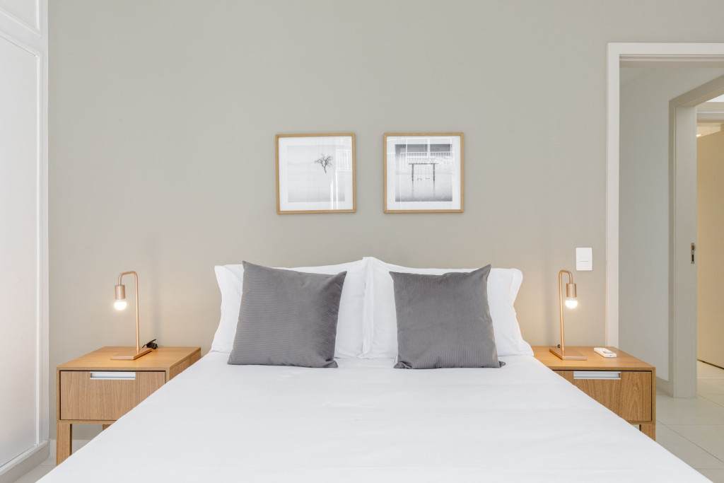 Quartos confortáveis, com roupa de cama e banho de qualidade, banheira, cozinha equipada e sala de jantar ampla, máquina lava e seca e área de serviço que permitem economizar com lavanderia durante sua estada.