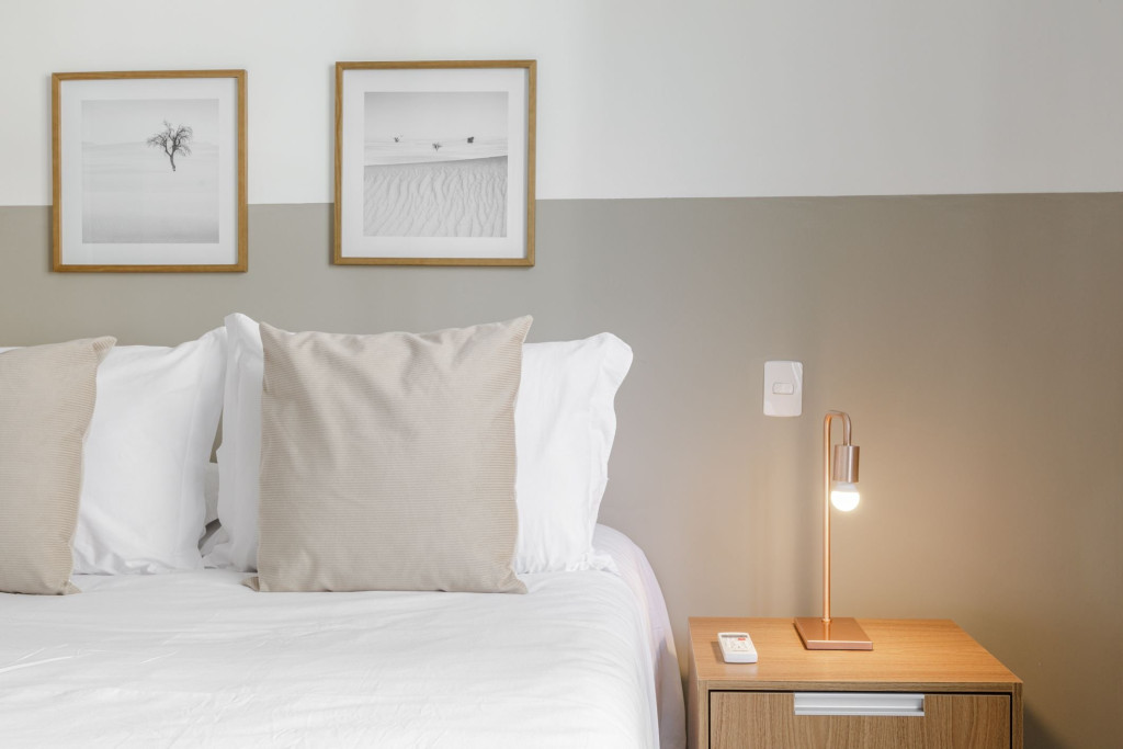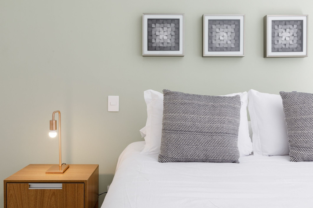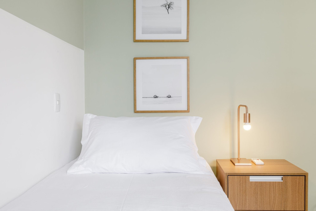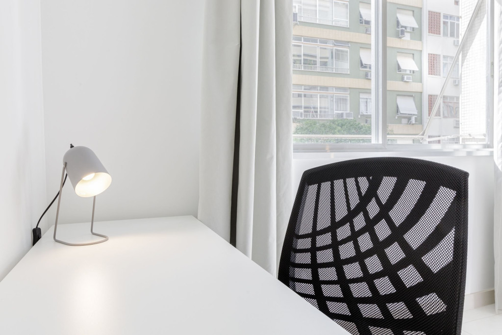 Sala equipada com Smart TV, TV a cabo e Wi-Fi, além de bancadas reservadas para Home Office, fazem deste um espaço perfeito para descanso com conectividade.