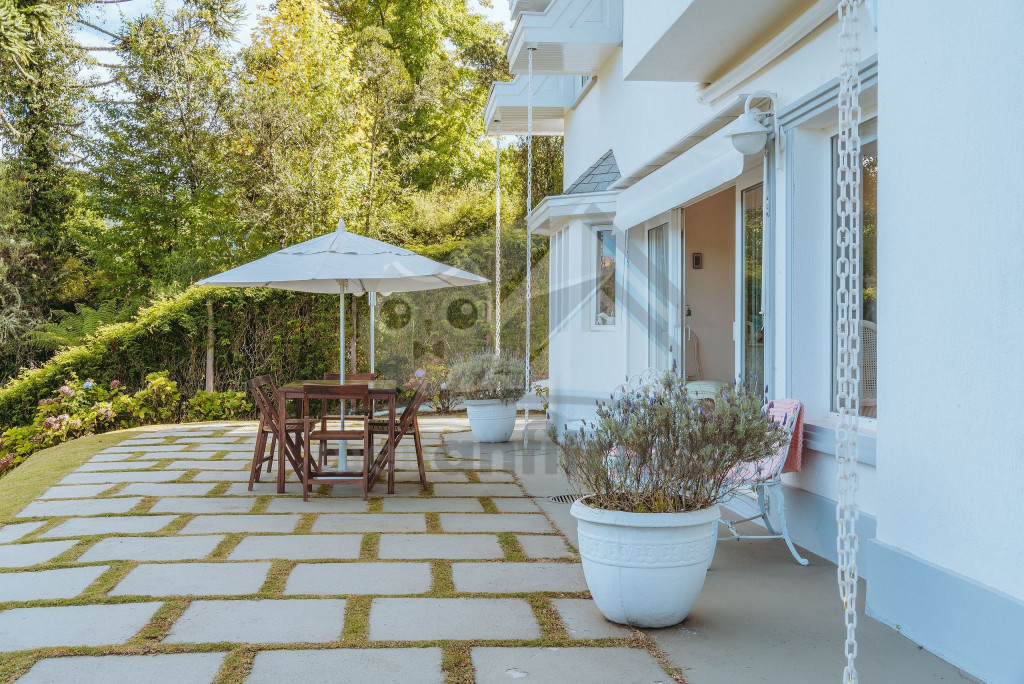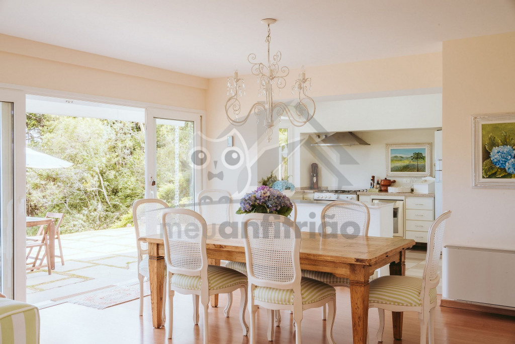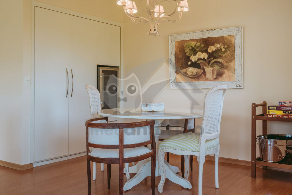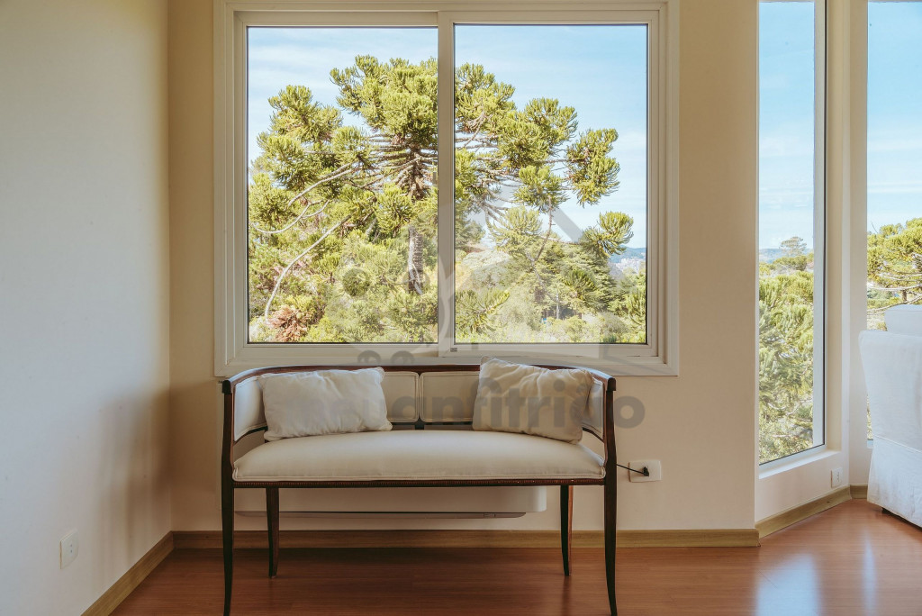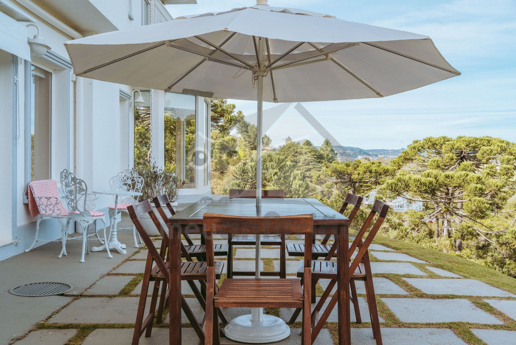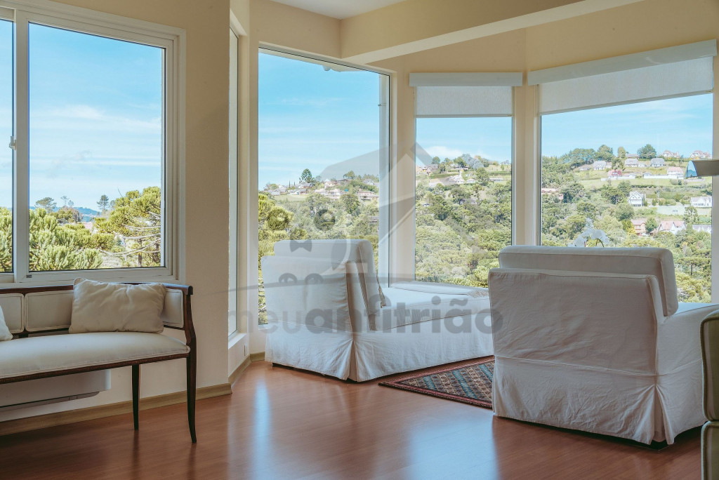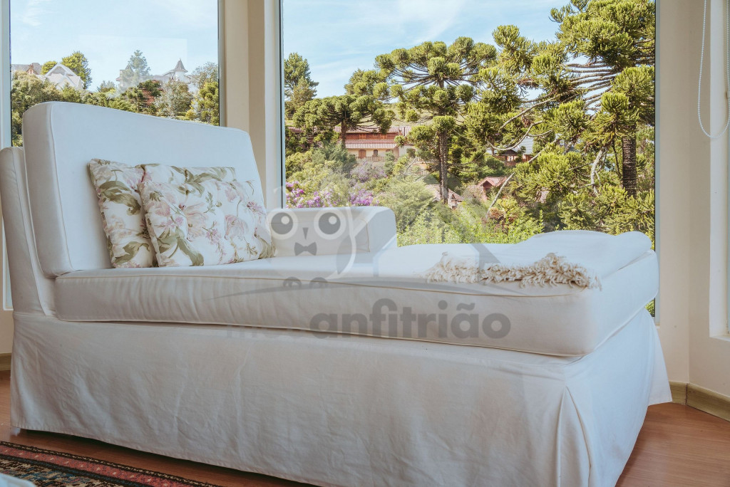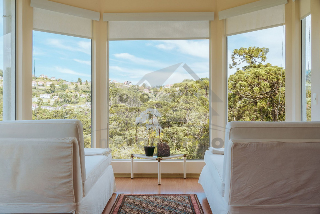 Logo ao entrar na casa, o hóspede terá acesso à uma ampla sala de estar com sofás e lareira. Conjugada a ela, há uma sala de jantar com mesa para 8 lugares. Saindo dela acessa-se a área externa que possui mesa, guarda-sol e vista para as montanhas. Ainda no andar térreo, temos uma cozinha completa com utensílios necessários para a estadia, uma sala de TV Smart com sofá amplo e um espaço de descanso e leitura com vistaVoltando à casa e subindo as escadas para o primeiro andar, encontram-se 4 suítes, sendo: 3 com uma cama de casal cada e 1 com três camas de solteiro.