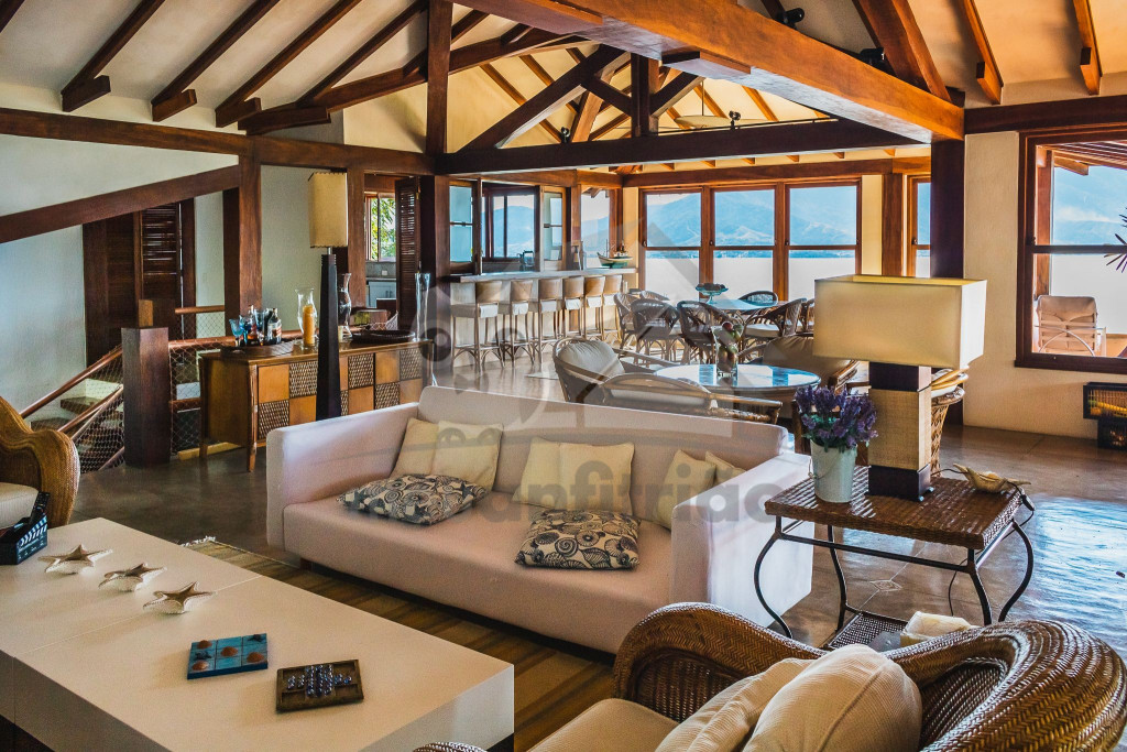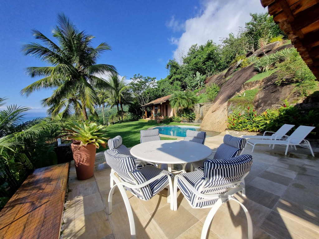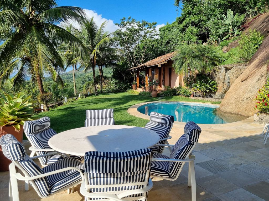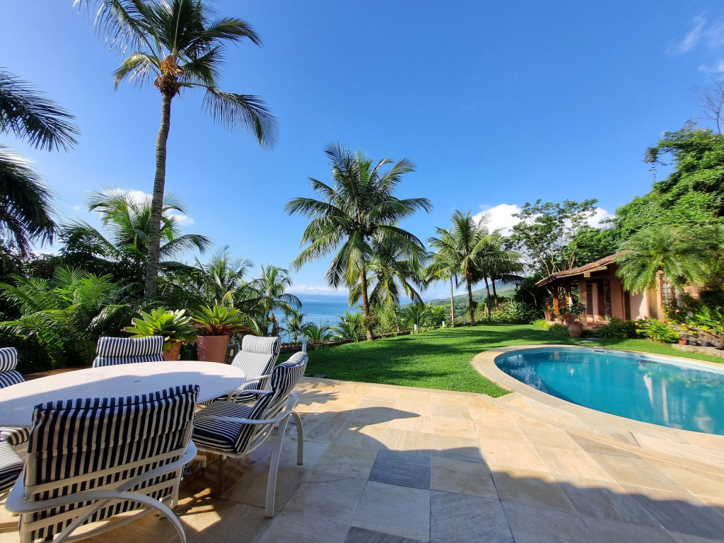 Localizada em área privilegiada na Ilhabela, nossa casa de 600m2 acomoda até 12 pessoas em 6 quartos, sendo 5 deles suítes. Conta com área gourmet, jardim e piscina.