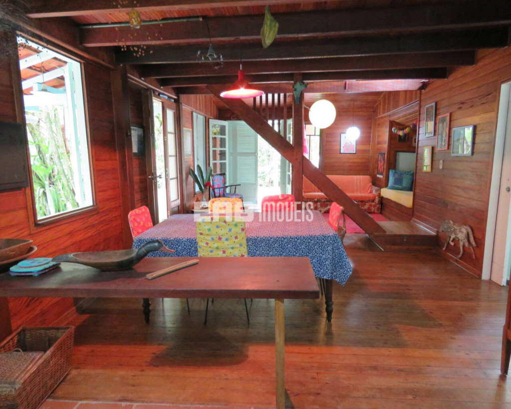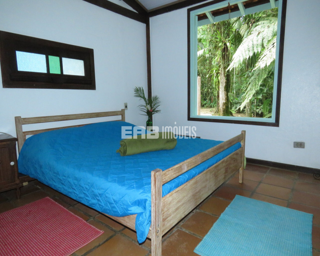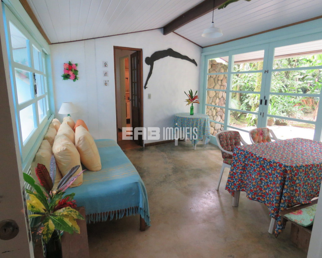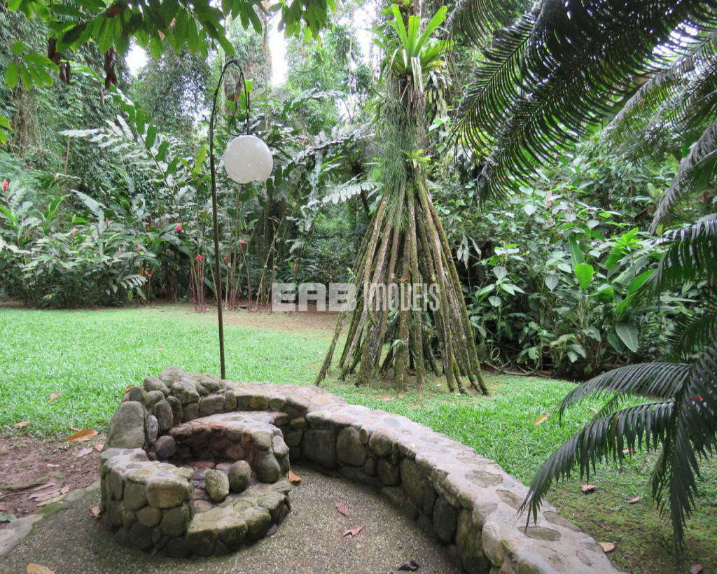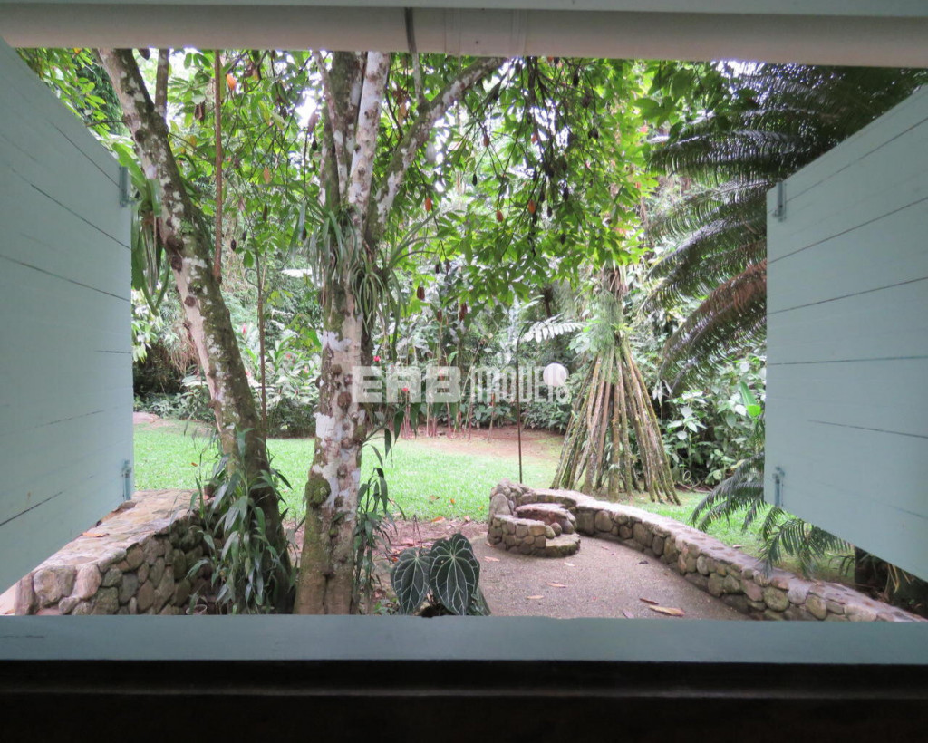 Em meio à exuberância da mata, a casa é um excelente ponto de observação de aves. Ideal para casais ou família pequena. Construção que privilegia o imenso jardim.