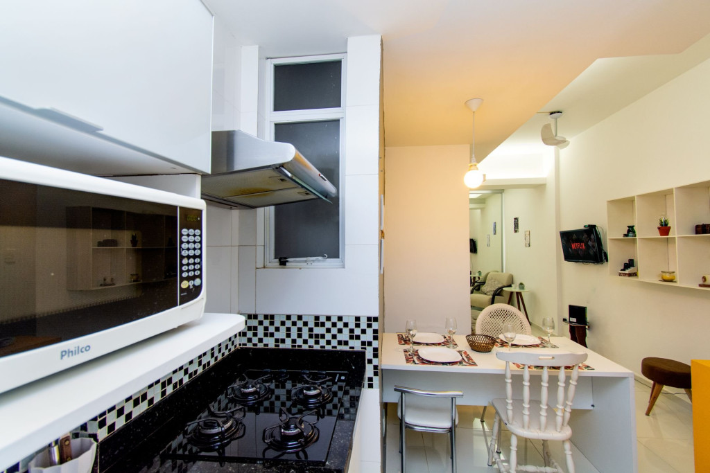 O apartamento é todo exclusivamente seu durante a reserva, com 1 cama de casal e um sofá-cama duplo no bairro mais fervente do Rio, Copacabana! Além disso, conte com: