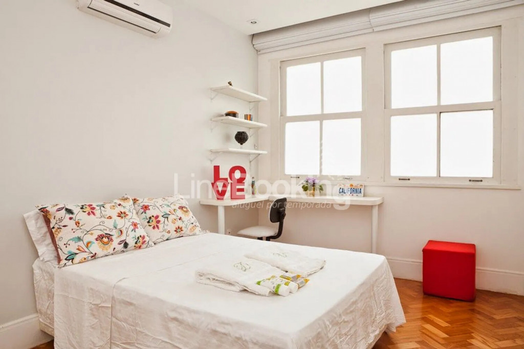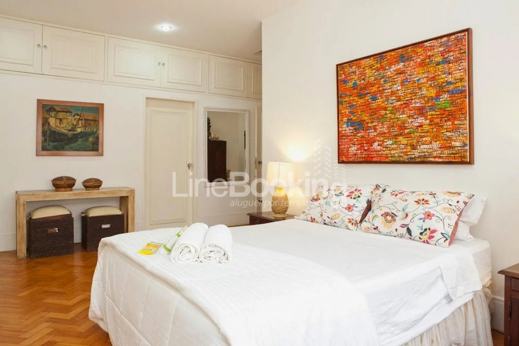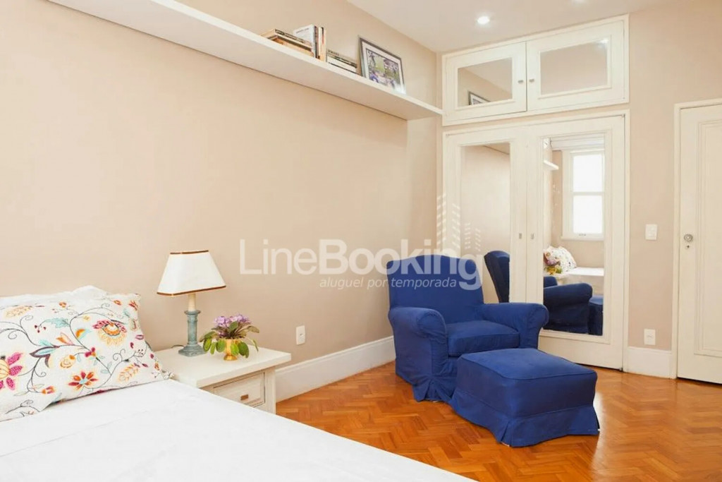 Localizado no primeiro andar de um edifício tradicional do posto 6, uma das áreas mais privilegiadas do Rio. O apartamento conta com uma suíte master com closet, sauna e hidromassagem, além disso, há mais 3 quartos muito espaçosos com cama de casal, armários, ar condicionado e 2 banheiros para atendê-los.