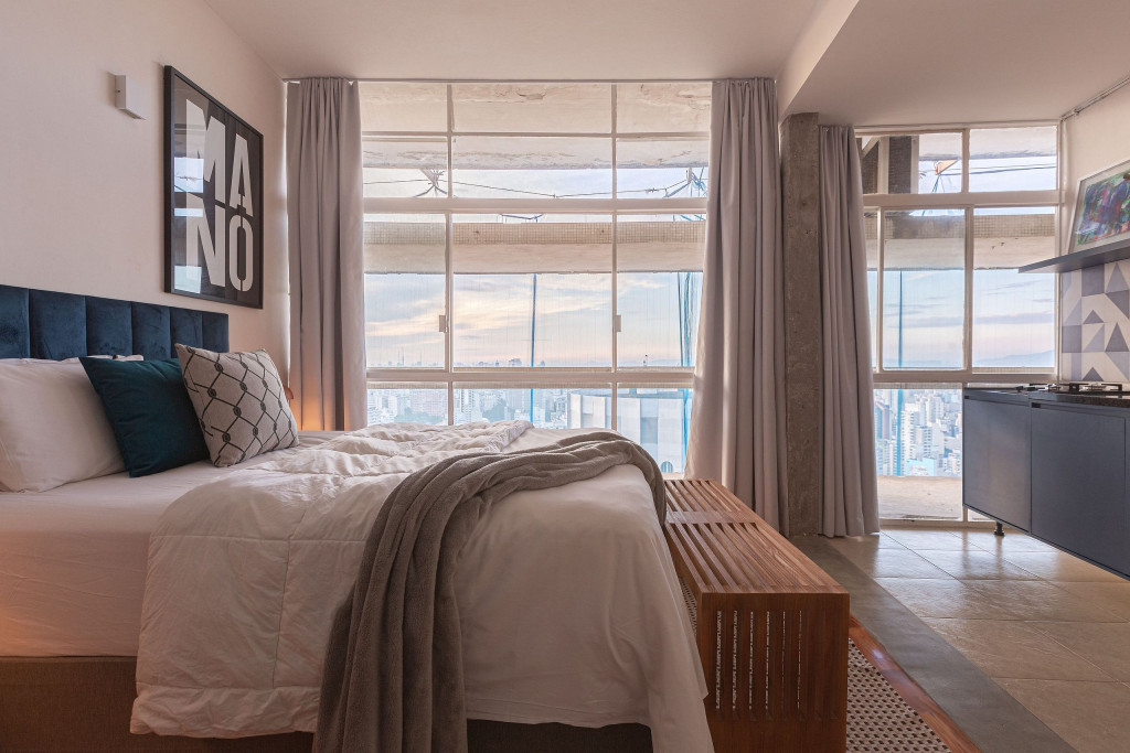 Tem curiosidade de se hospedar no andar mais alto Edifício mais famoso da cidade? Então encontrou o lugar perfeito pra isso.Apartamento de conceito aberto, com vista incrível do 32 andar e todo o conforto que você precisa: ar condicionado, cama Queen, Smart TV em uma decoração acolhedora e funcional.