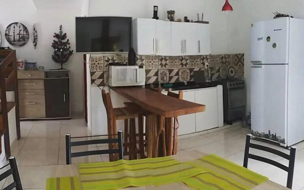 3 quartos, Sala, Cozinha completa, Banheiros, Churrasqueira, Quintal, Próxima a praia.