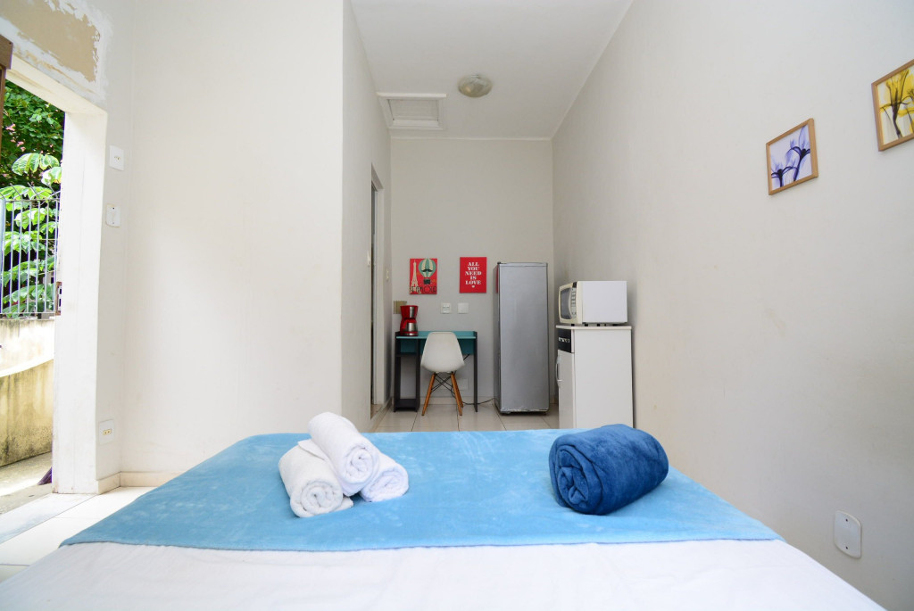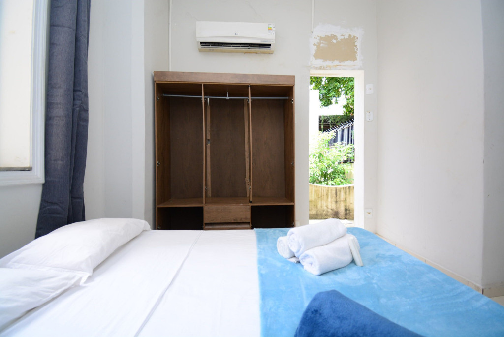 Sua reserva é exclusiva, para o uso de toda a acomodação. Convidados são bem-vindos! A hospedagem é completa, possui todas as funcionalidades de uma casa normal, toda pensada para lhe atender com conforto e segurança! Detalhadamente: Banheiro: Secador de cabelo, Ducha higiênica, Água quente (elétrico). Acomodação: Cama casal, Colchão de solteiro, roupas de cama e banho, ar condicionado, TV com canais abertos e IPTV, ventilador, cortina com blackout, ferro de passar, secador de cabelo, guarda-roupa, cabides, cozinha compacta, com utensílios completos, fechadura eletrônica na entrada, varanda, closet. Dois destaques da sua hospedagem são o aconchego e silêncio que ele oferece, ao mesmo tempo dentro e fora da cidade. Pertinho da praia, muita gente leva seus pets e crianças para correr e brincar, enquanto desaceleram da correria do dia a dia. Além disso, perto do Hospital Copa D’Or, transportes, ônibus e metrô, ponto de taxi, bikes do Itaú, comércios e todo tipo de serviço disponível no bairro. Prédio residencial, seguro e aconchegante; ideal para famílias e grupo de amigos que vêm relaxar e curtir um pouco!