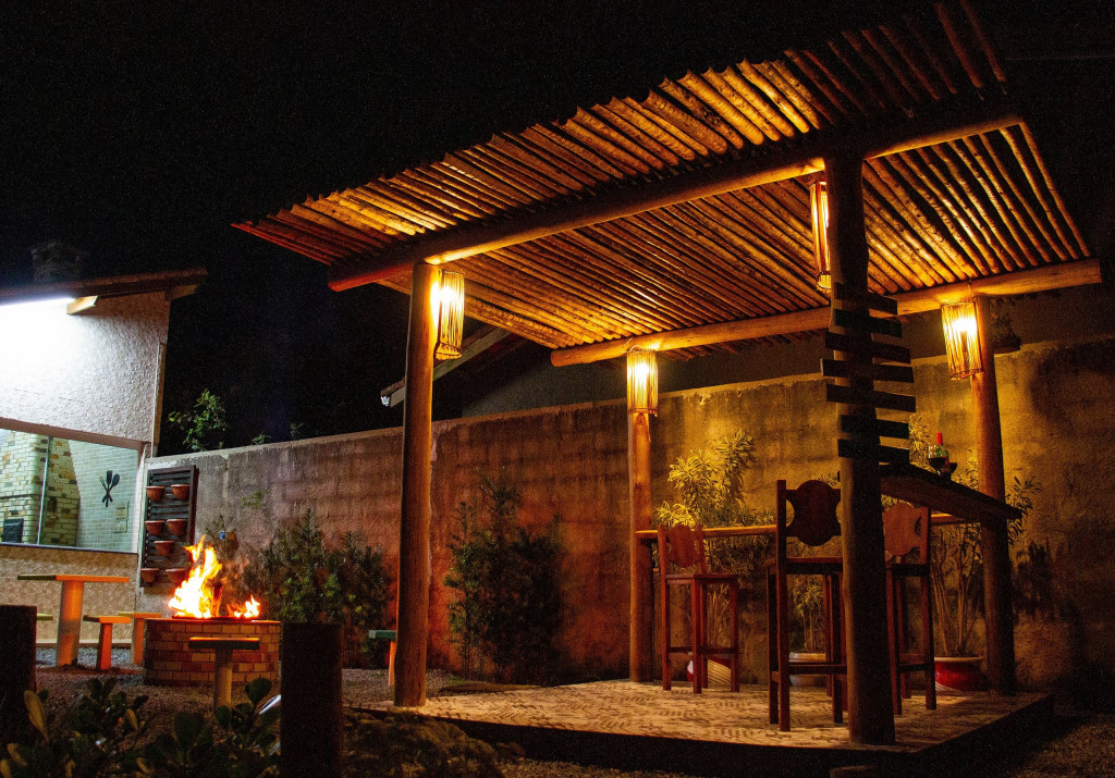 - Espaço Kids equipado;- Piscina com Cascata e iluminação noturna;- Pergolado pra curtir o ar livre e tomar drinks;- Lareira Externa (fireplace) pra curtir a noite a céu aberto;- Churrasqueira e fogão a lenha integrado com a cozinha;- Utensílios do churrasqueiro;- 2 Áreas Relax: espaço com redes pra descançar após a praia;- 4 Grandes e confortáveis quartos com varanda para 16 pessoas em camas;- Aceita PET gratuitamente;- Estacionamento fechado e gratuíto no local para 3 carros;
