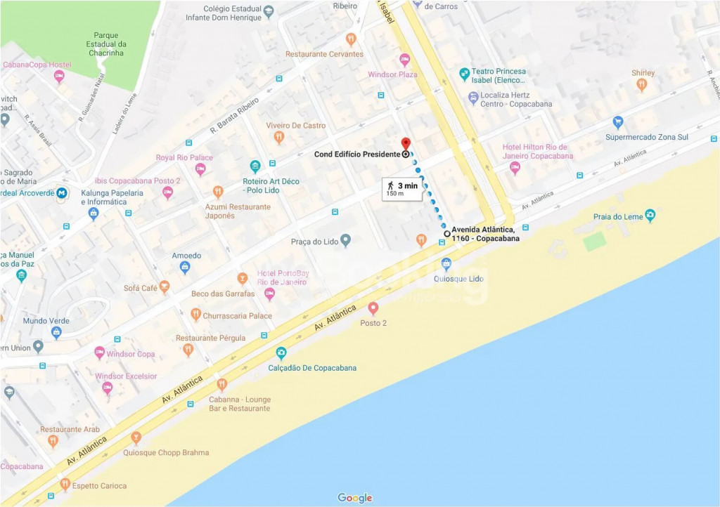 Localizado ao lado do hotel Hilton com vista mar e polo gastronômico do bairro de Copacabana.