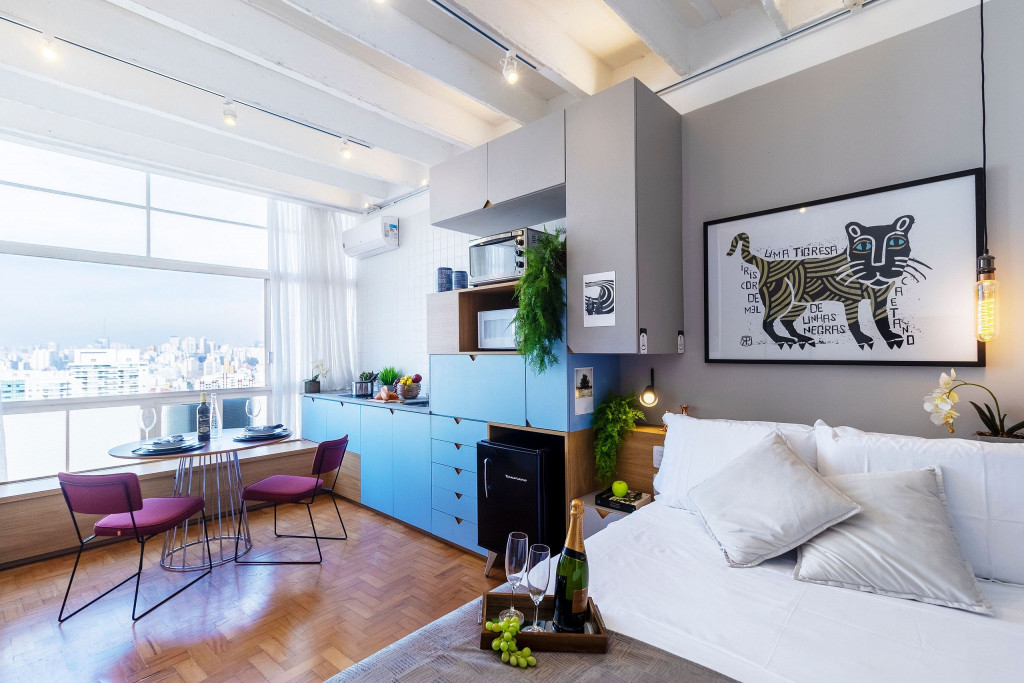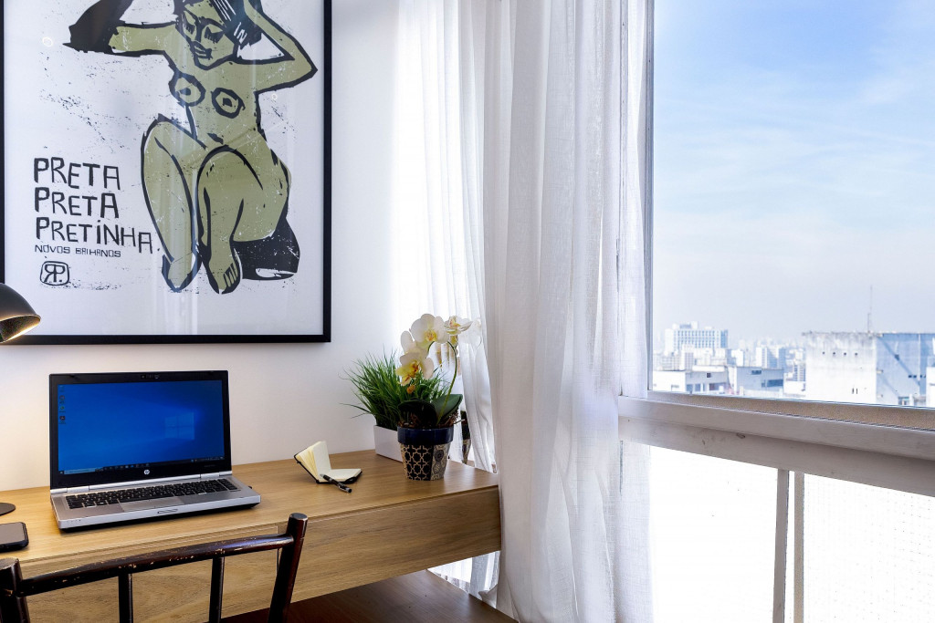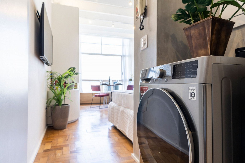O charmoso e bem iluminado apartamento fica no Copan, o edifício mais famoso da cidade, e tem o espaço ideal para uma temporada em São Paulo. É muito bem equipado com SmartTV 43", ar-condicionado, internet Ultra-veloz, máquina Nespresso, filtro de água, máquina lava e seca e cozinha completa com microondas. O banheiro conta com uma ótima ducha higiênica e um bom chuveiro. No térreo há uma galeria com muitos bares, padaria, farmácia, cafés, cabeleireiro e muito mais.