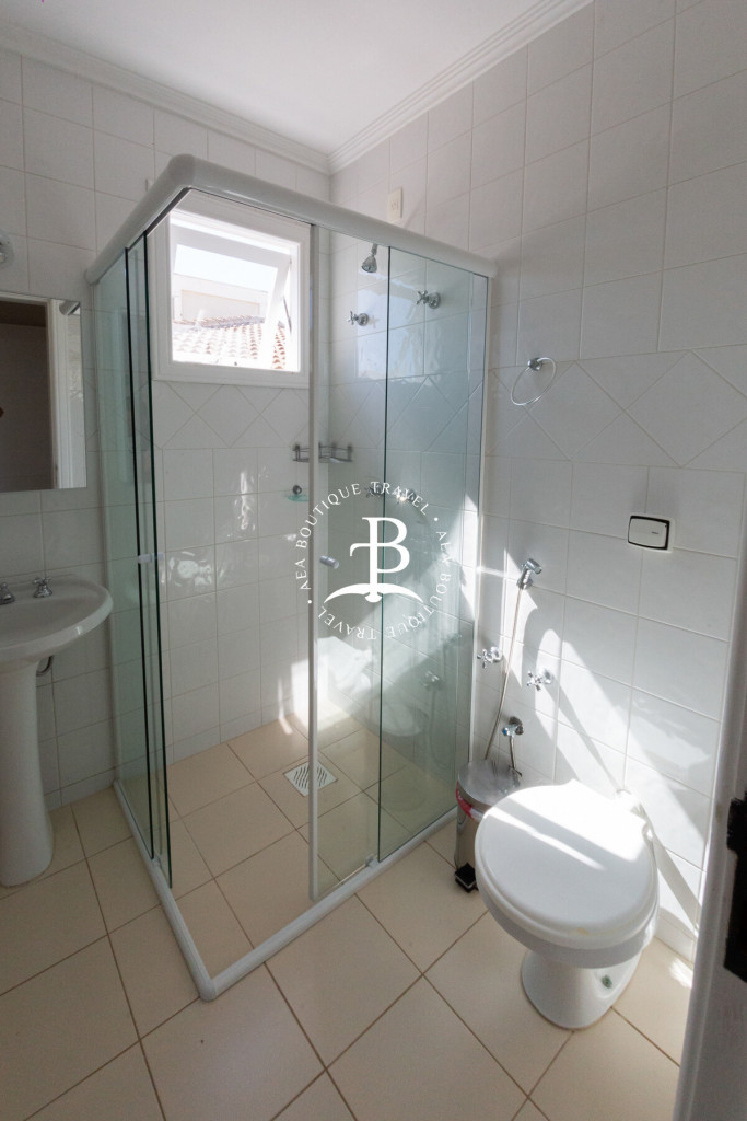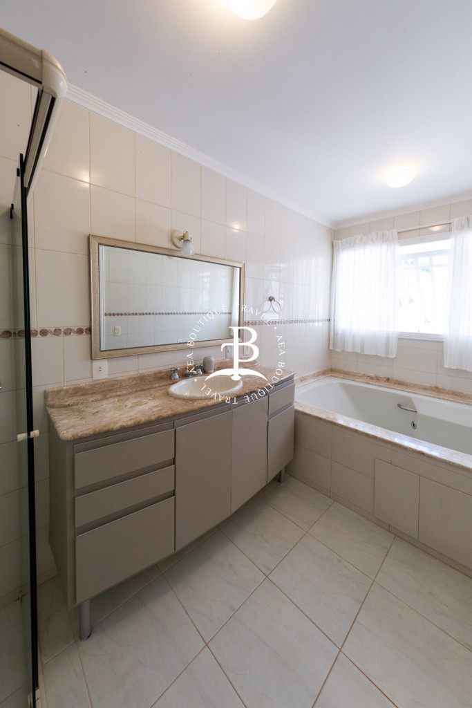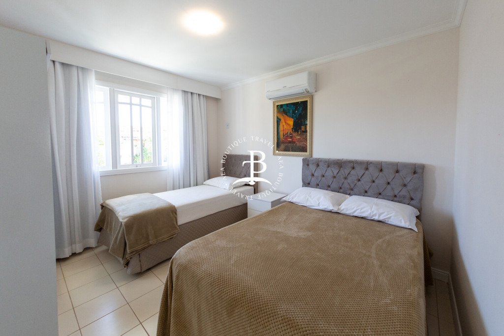 Oferece todas as comodidades para que você desfrute de sua estadia no maior conforto: guarda-roupa com cabides, 06 aparelhos de ar condicionado, espaço para refeições, TV, lareira, ‘internet’ Wi-Fi em toda propriedade como cortesia, enxoval completo de cama, mesa, banho e garagem privativa.