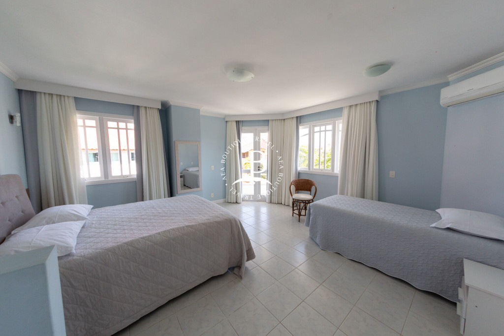 São 04 Suítes totalmente equipadas sendo 2 suítes ‘master’ com hidromassagem e 1 quarto de apoio no térreo, cozinha completa e área com lindo jardim, além de 02 salas uma com sofá (cama) casal e outra com sofá retrátil para 1 pessoa.