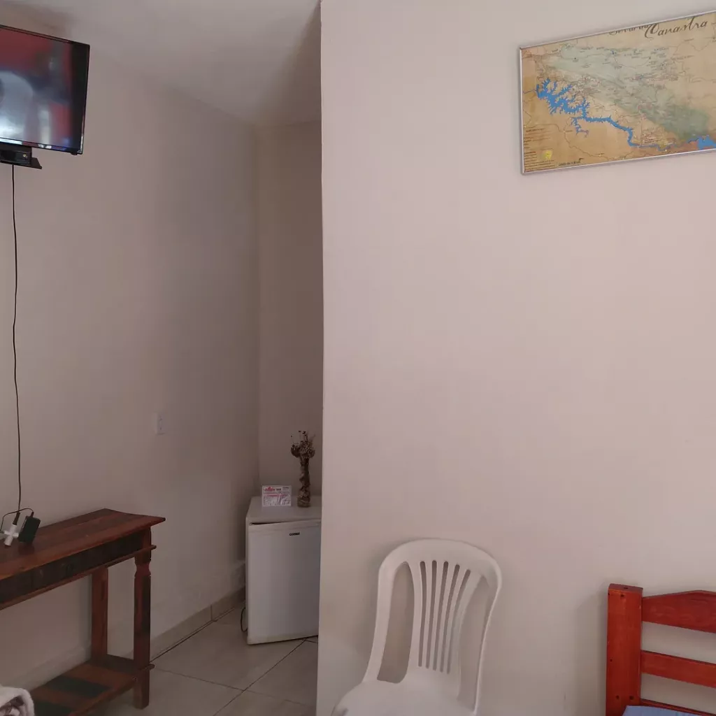 Espaço Canastra são três suítes com frigobar tv por assinatura wi-fi fogão geladeira microondas gás de cozinha churrasqueira garagem piscina.