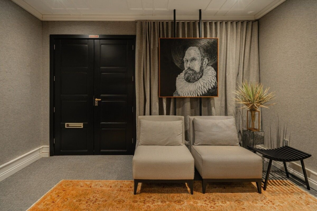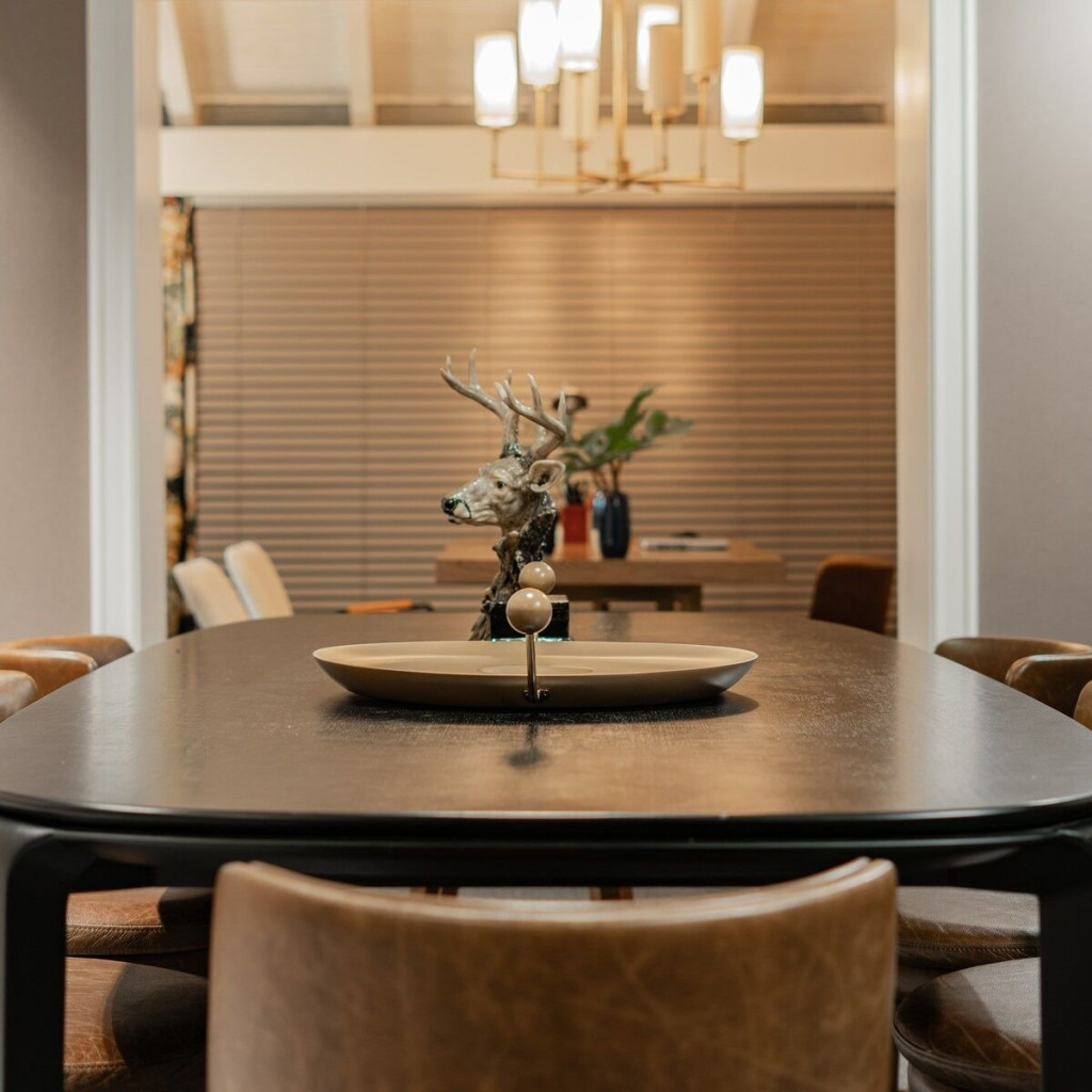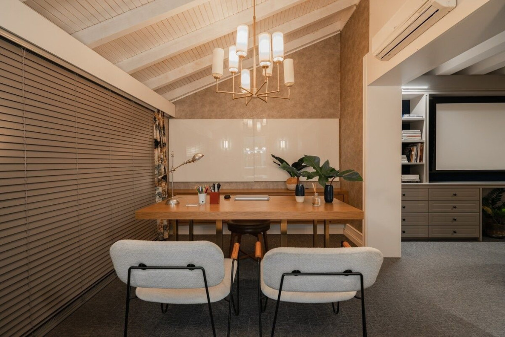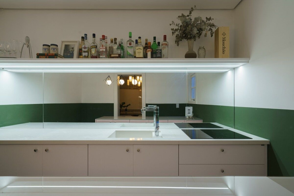 O espaço conta com:1 hall social com duas poltronas e 1 aparador tipo carrinho de chá1 sala de apresentação/reunião com 1 mesa de 320x110 cm e 8cadeiras giratórias em couro. Uma tela retrátil de 110 polegadas1 sala de apoio com 1 mesa de 180x100 cm, 1 cadeira giratória emcouro e 2 poltronas de aproximação1 cozinha com balcão de ilha, 1 fogão elétrico, 1 frigobar e 1 microondasEspaço de área de externa com lareira, banco em pedra em todaextensão, 1 gazebo coberto, 1 conjunto de duas poltronas e 1 sofáde 160 cm, 1 aparador em madeira de 200x30 cm, 1 mesa decentro1 Lavabo extremamente decoradoEspaço de churrasqueira com duas cadeiras e 1 sofá de 140 cmO ESPAÇO conta com som ambiente embutido em todos espaços,inclusive no jardim.Também conta com dois ares condicionados interno, wi-fi e iluminação externa