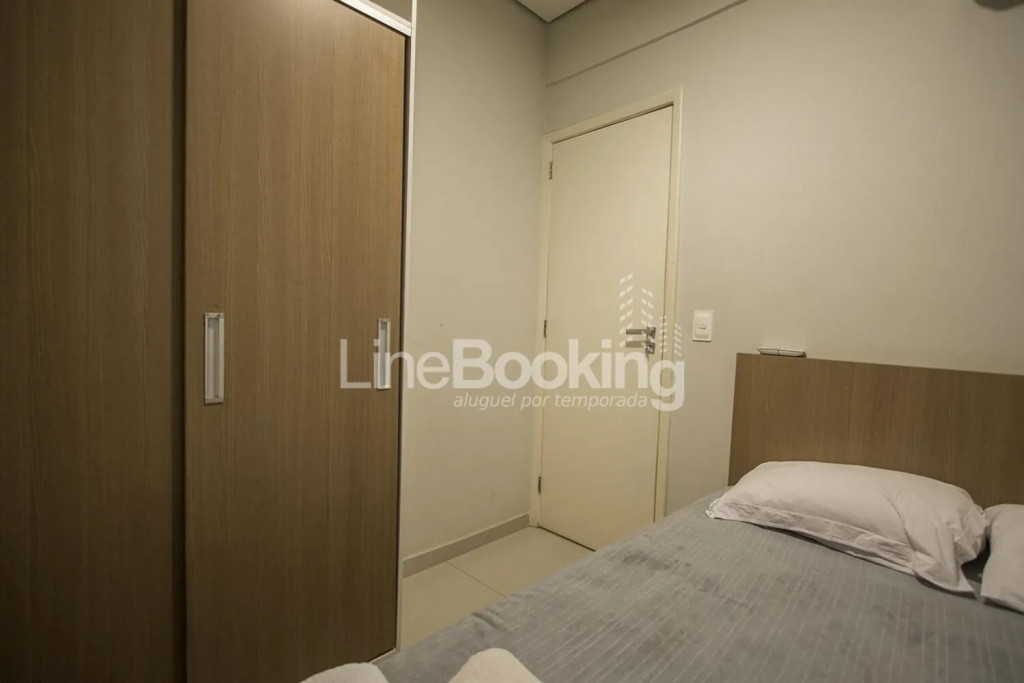 Quarto 1: Cama de casal, ar condicionado, armário planejado.