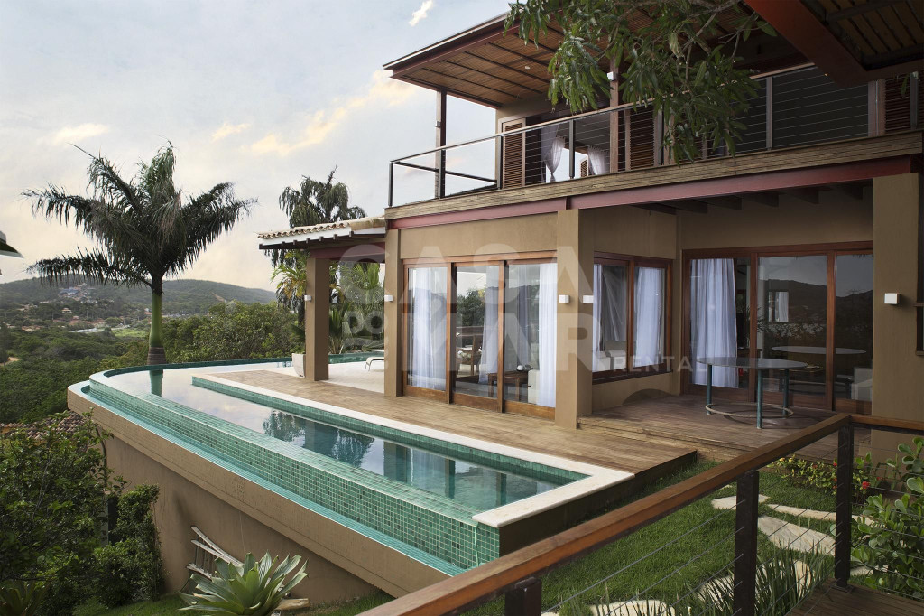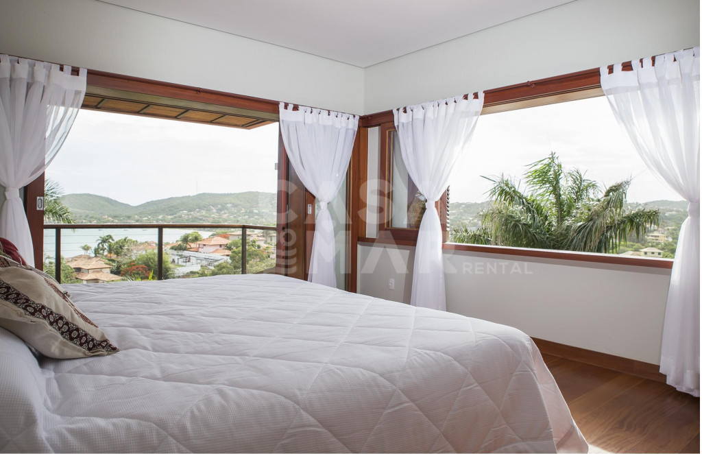 Linda casa com cinco suítes, com vista privilegiada de Búzios. Cinco amplas suítes, com ar condicionado, e totalmente equipadas. Três salas de estar, sala de cinema para até vinte convidados, e cozinha completa com utensílios de alta qualidade.Área externa com piscina de borda infinita, espaço gourmet com churrasqueira e forno de pizza à lenha. Sauna para até dez pessoas.Casa totalmente arejada, com amplas janelas e portas de vidro, aquário natural, horta e muita natureza.Uma das vistas mais lindas de Búzios.-Água e luz pago a parte.