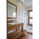 Casa totalmente arejada, com amplas janelas e portas de vidro, aquário natural, horta e muita natureza.