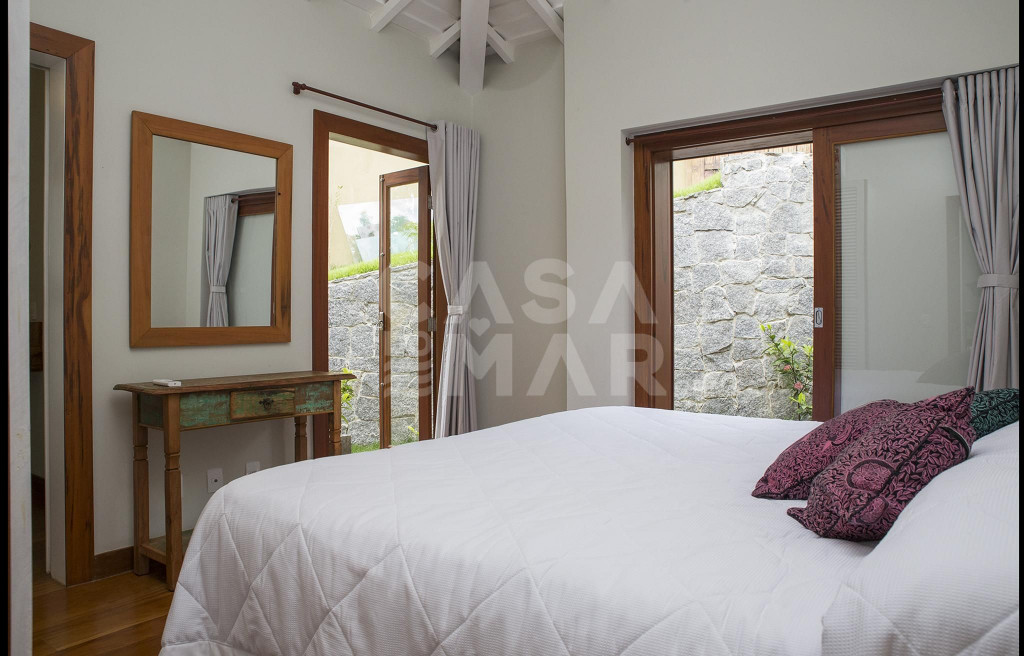 Linda casa com cinco suítes, com vista privilegiada de Búzios. Cinco amplas suítes, com ar condicionado, e totalmente equipadas. Três salas de estar, sala de cinema para até vinte convidados, e cozinha completa com utensílios de alta qualidade.