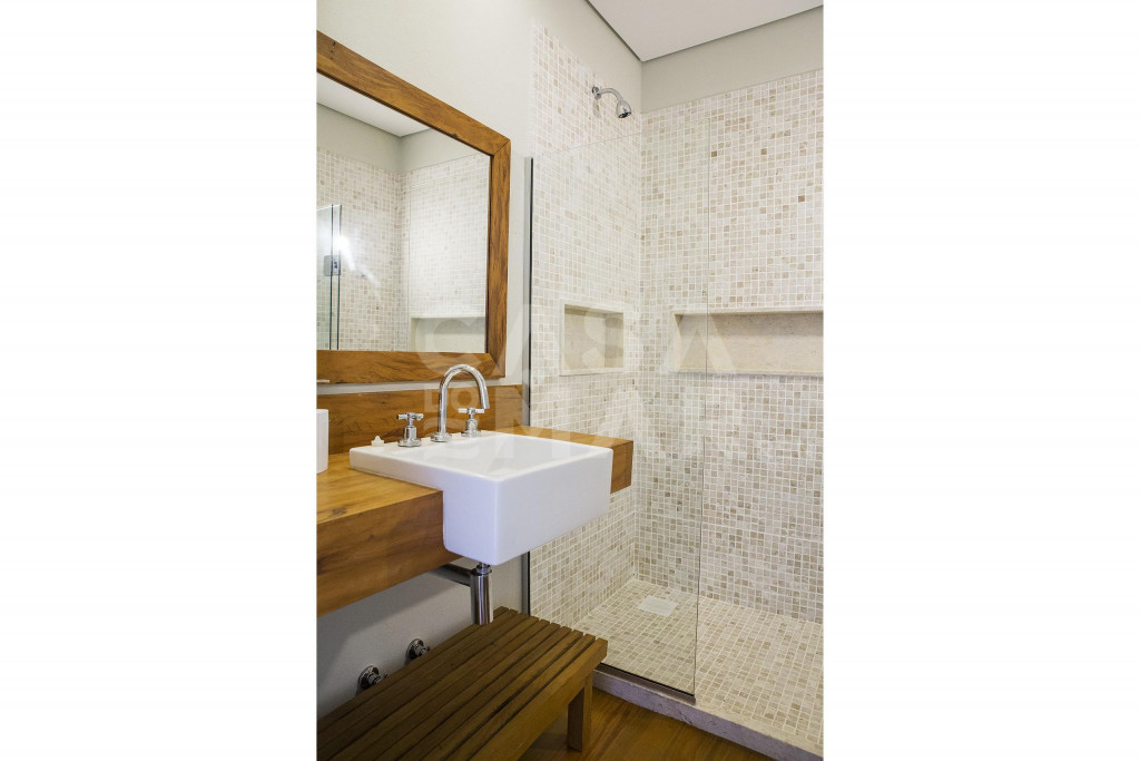 Área externa com piscina de borda infinita, espaço gourmet com churrasqueira e forno de pizza à lenha. Sauna para até dez pessoas.