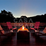 Estão disponíveis também internet por Wi-Fi, sistema de som, apple TV, TV em três suítes, churrasqueira, forno compacto a lenha de pizza/pão, máquina de café Nespresso, além de cozinha e área de serviço inteiras equipadas.