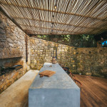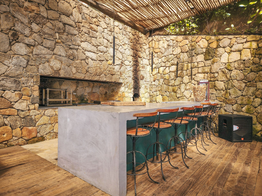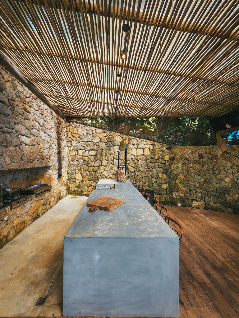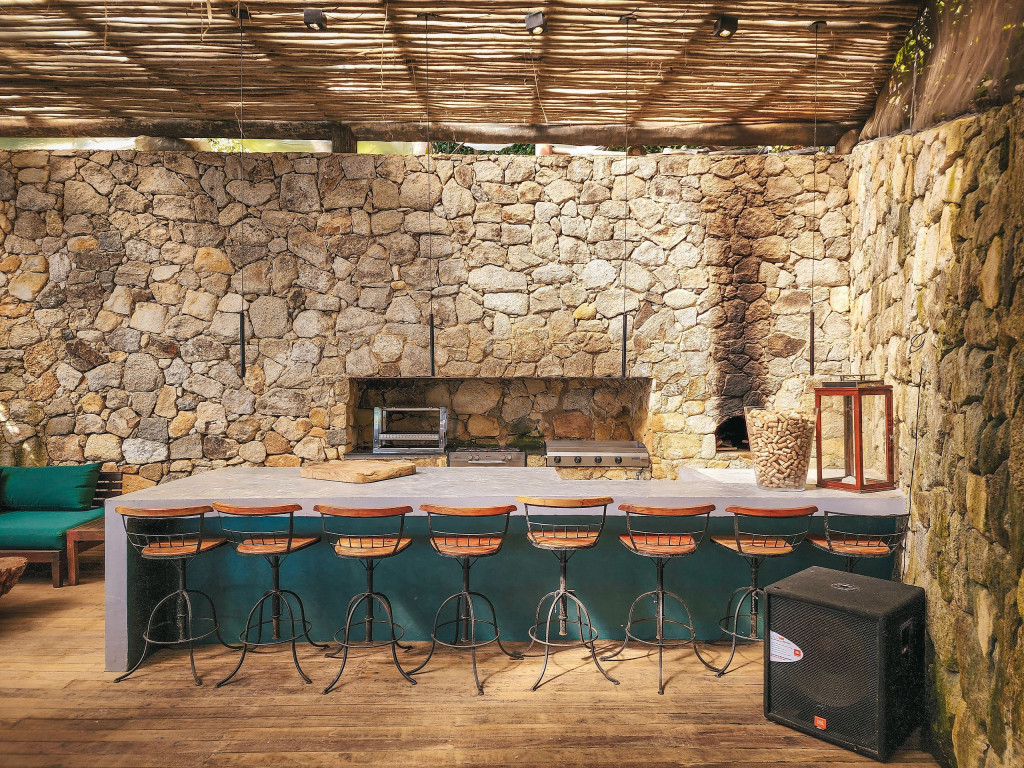 A forma desta casa recria o desenho sinuoso do morro em que se encaixa, e preenche o espaço aberto por um corte anterior e agressivo na geografia da ilha.A casa possui, sala de TV com mesa de sinuca, piscina cinematográfica, lareira externa, ofurô e sala de massagens na suíte master, são 7 suítes no total ( sendo 3 suítes com king size), 3 suítes com 2 camas de viúvo cada , 1 suíte com um confortável beliche. Quadra de tênis , campo de futebol, play ground ( compartilhado com o condomínio ).Exclusivo : Heliponto, sauna seca, sauna vapor, jacuzzi, academia completa com máquinas technogym e life fitness, raia de 25 metros pra natação, área gourmet, churrasqueira e forno de pizza. - Água e luz pago a parte.