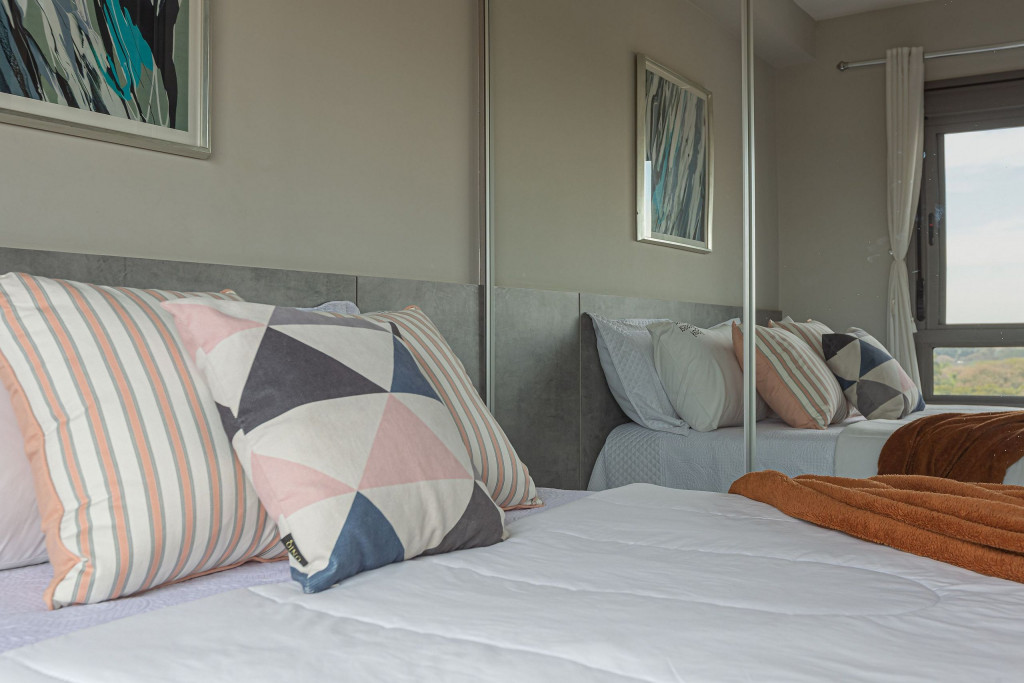 O apartamento possui varanda com uma linda vista, cozinha completa com utensílios básicos para culinária do dia a dia, ar condicionado, wi-fi, piscina, academia, garagem, lavanderia (paga a parte) e portaria 24 horas. Roupa de cama, banho, xampu e sabonetes estão a sua disposição.