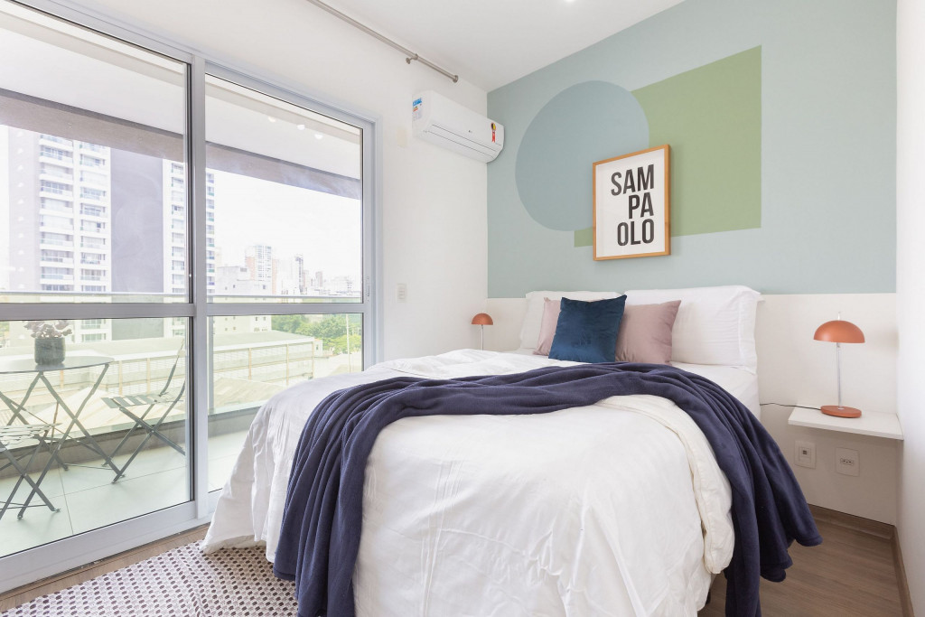 Estudio confortável bem decorado ao lado do Allianz Parque. O apartamento possui AC, cozinha compacta e uma varandinha charmosa.