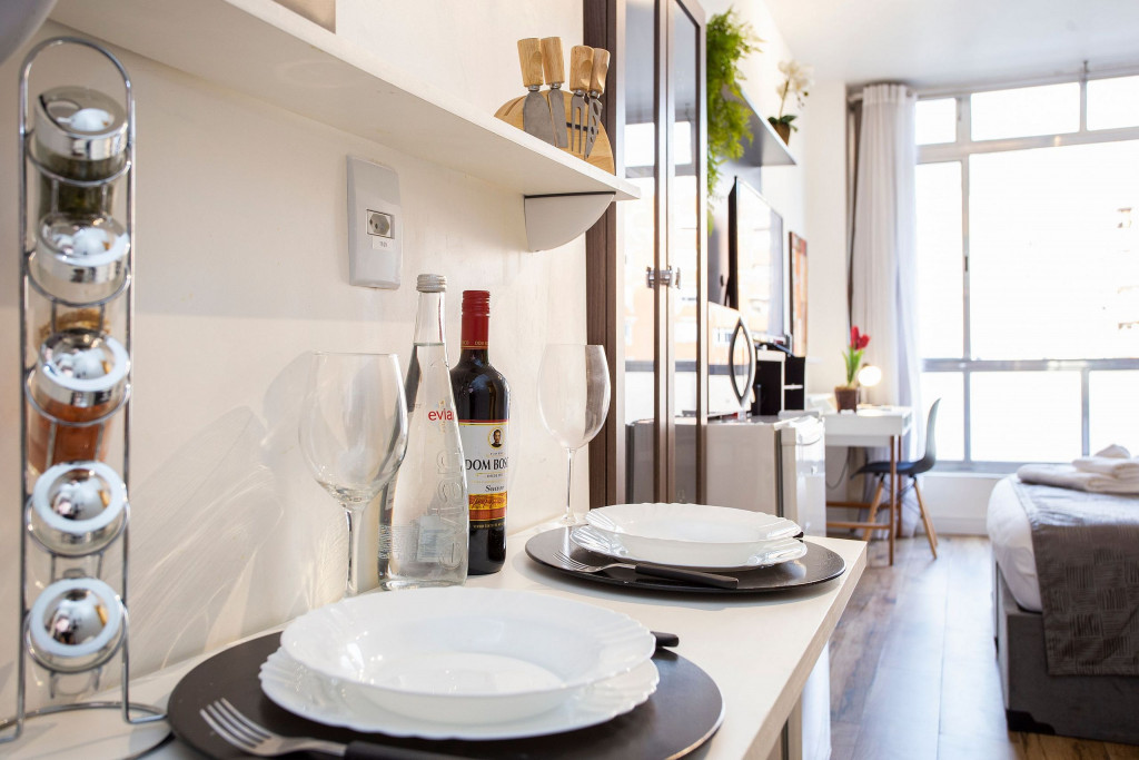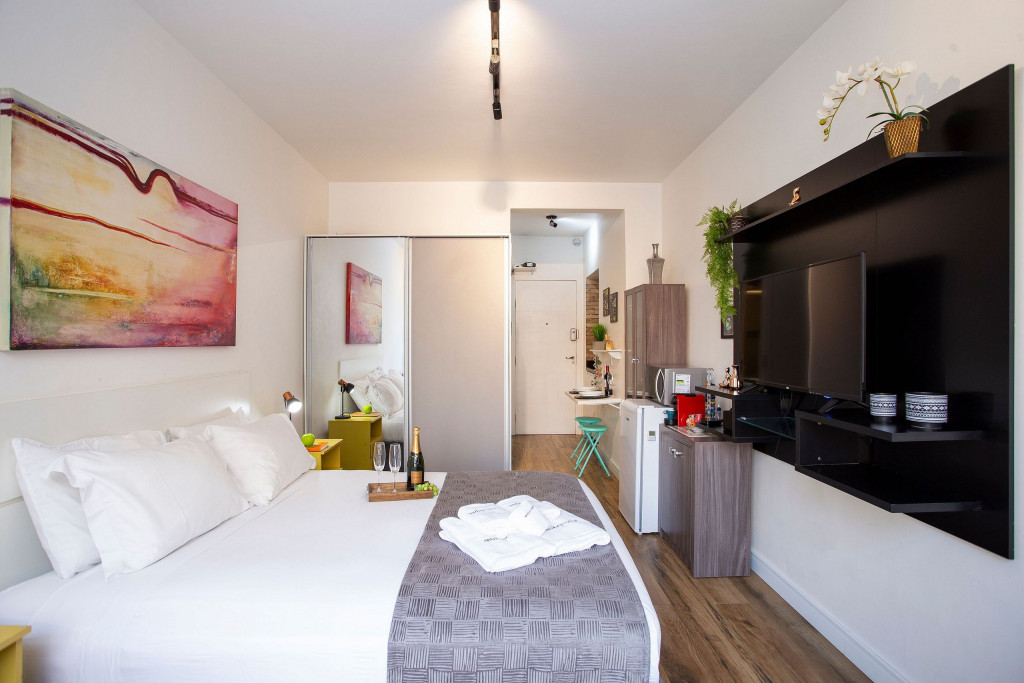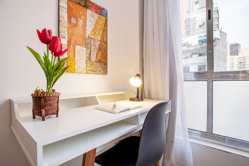 Estúdio moderno, estrategicamente localizado a apenas 500m da estação de metrô Higienópolis-Mackenzie (Linha 4 - Amarela) e a poucos minutos da Rua Augusta. O espaço oferece a acomodação ideal para uma estadia na cidade. O estúdio possui uma SmartTV de 43" com Netflix, cama queen size, fechadura digital, internet ultra-veloz, cozinha completa com todos os utensílios necessários e uma máquina Nespresso. Além disso, o banheiro está equipado com um excelente secador de cabelo e chuveiro elétrico.