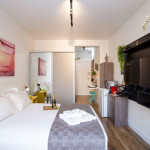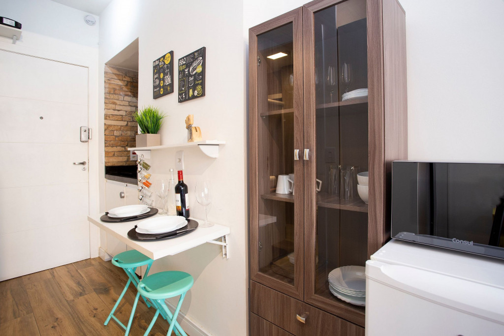 ESTÚDIO: - Poltrona-cama: Seus mecanismos de abertura e fechamento são fáceis de usar, permitindo uma transição suave entre as duas funções, é uma opção prática e confortável. - Smart TV de 43 polegadas: Relaxe e desfrute de uma ampla variedade de entretenimento, no sofá da sala, com nossa Smart TV de alta definição. Assista aos seus filmes e programas favoritos com qualidade excepcional. - Internet Ultra-Veloz: Mantenha-se conectado com o mundo durante sua estadia. Oferecemos acesso à internet de alta velocidade para que você possa compartilhar suas experiências e manter-se atualizado em todos os ambientes. - Mesa de Jantar para 2 pessoas: Nossa mesa de jantar comporta até 2 pessoas, proporcionando um ambiente perfeito para refeições confortáveis. - Fechadura Digital: Priorizamos sua segurança e tranquilidade. Nossa locação conta com uma fechadura digital de alta tecnologia, proporcionando praticidade e evitando a preocupação com chaves. COZINHA: