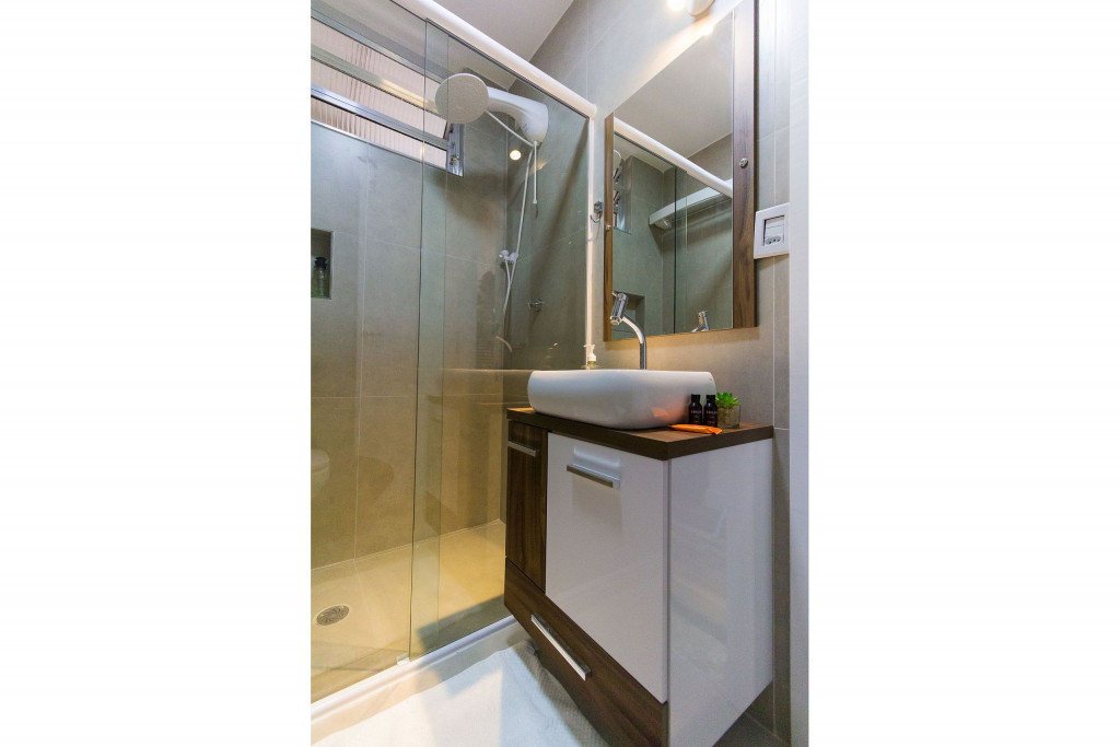 - Fogão: Sinta-se em casa na nossa cozinha, completa com um moderno fogão, proporcionando a flexibilidade para preparar suas refeições favoritas. Seja um mestre culinário ou alguém que gosta de experimentar novos sabores, você terá tudo o que precisa à sua disposição.BANHEIRO: