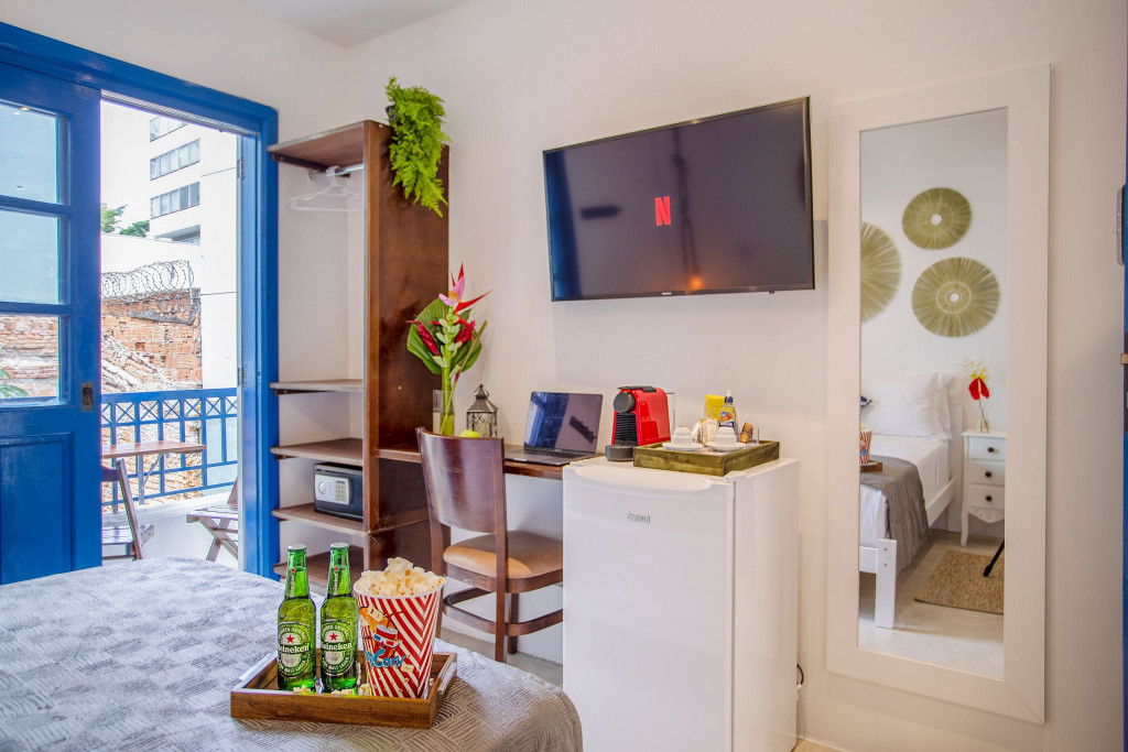 ESTÚDIO: - Cama de Casal: Desfrute de momentos de descanso e renovação em nosso quarto com uma cama de casal confortável. Garantimos noites tranquilas e revigorantes para que você aproveite plenamente cada momento do seu sono. Além disso, oferecemos também uma cama de solteiro para proporcionar o máximo conforto durante a sua estadia com mais acompanhantes. - Smart TV: Relaxe e desfrute de uma ampla variedade de entretenimento, no sofá da sala, com nossa Smart TV de alta definição. Assista aos seus filmes e programas favoritos com qualidade excepcional. - Internet Ultra-Veloz: Mantenha-se conectado com o mundo durante sua estadia. Oferecemos acesso à internet de alta velocidade para que você possa compartilhar suas experiências e manter-se atualizado em todos os ambientes. - Ventilador de teto: Mantenha-se fresco e confortável durante toda a sua estadia. Nosso imóvel possui ventilador de teto para garantir uma temperatura agradável em todos os ambientes. - Cortinas Blackout: Uma boa noite de sono é essencial. Por isso, em todos os quartos da nossa locação, você encontrará cortinas blackout, garantindo um ambiente escuro e silencioso para um descanso revigorante. - Mesa de Trabalho: Seja para trabalhar remotamente, estudar ou apenas navegar na internet, nossa mesa de trabalho proporciona um espaço confortável e funcional. Mantenha-se produtivo durante suas férias ou viagens de negócios. - Fechadura Digital: Priorizamos sua segurança e tranquilidade. Nossa locação conta com uma fechadura digital de alta tecnologia, proporcionando praticidade e evitando a preocupação com chaves. - Cozinha muito bem equipada: Prepare deliciosas refeições na nossa cozinha completa e moderna. Equipada com todos os utensílios e eletrodomésticos necessários, você terá liberdade para explorar suas habilidades culinárias. - Taças de vinho: Brinde momentos memoráveis com taças de vinho prontas para receber suas celebrações. - Máquina Nespresso: Desperte seus sentidos com uma xícara de café fresco todas as manhãs. Em nossa locação, disponibilizamos uma máquina Nespresso para que você possa apreciar a sua bebida preferida. No entanto, é necessário trazer suas próprias cápsulas de café, pois não fornecemos. - Fogão: Sinta-se em casa na nossa cozinha, completa com um moderno fogão, proporcionando a flexibilidade para preparar suas refeições favoritas. Seja um mestre culinário ou alguém que gosta de experimentar novos sabores, você terá tudo o que precisa à sua disposição. - Microondas: Prepare suas refeições com praticidade e rapidez, tendo à disposição um micro-ondas moderno e funcional. BANHEIRO: - Secador de Cabelo: Para sua conveniência, disponibilizamos um secador de cabelo de qualidade em nosso imóvel. Dessa forma, você não precisa se preocupar em trazer o seu, permitindo que você viaje mais leve e confortável. - Chuveiro elétrico: Proporcionando conforto em todos os detalhes garantindo um banho quente e relaxante em qualquer momento do dia. ÁREA COMUM: - Jardim: Desfrute da natureza em nosso próprio jardim. Com cadeiras confortáveis, este é o local ideal para relaxar, ler um livro ou simplesmente apreciar o momento. - Pátio: Aprecie o momento em nosso pátio com cadeiras e mesa no último andar, a decoração cuidadosa é a combinação perfeita entre a tranquilidade e conforto. ADMINISTRAÇÃO DO IMÓVEL: O Imóvel é administrado pela Brazilian Corner, uma empresa nacional que oferece aos seus clientes, que viajam a lazer ou negócios, a experiência de locar imóveis únicos durante uma temporada. As residências são planejadas para prover grande conforto. Nosso escritório fica no bairro Vila Madalena em São Paulo. Desde 2018, a Brazilian Corner é pioneira em seu ramo, pois além de proporcionar imóveis bem estruturados, também é responsável por toda a logística e suprimentos básicos que compõe cada uma de suas residências, o que as torna extremamente funcionais. Nosso grande diferencial é a boa comunicação e a seriedade com que atuamos para resolver qualquer entrave que possa acontecer antes, durante, e/ou após a estadia de nossos clientes. Nossos colaboradores são treinados e têm as ferramentas necessárias para proporcionar um excelente nível de serviço. Os apartamentos e casas são limpos por nossas equipes especializada, a nossa roupa de cama e banho são lavadas e higienizadas em lavanderias profissionais. Mantemos o profissionalismo em tudo o que fazemos para, dessa forma, garantir a tranquilidade e confiança de nossos clientes. COMPROMISSO COM A INCLUSÃO: Na Brazilian Corner, acreditamos que a diversidade é o que torna o mundo um lugar incrível para explorar. Celebramos a pluralidade de culturas, identidades e experiências de vida. Para a comunidade LGBTQIA+, este é um lar longe de casa, onde você pode ser autêntico e verdadeiro consigo mesmo, onde a diversidade é celebrada e a igualdade é nossa prioridade. Sabemos que viajar nem sempre é fácil, e queremos tornar a sua estadia o mais confortável possível. Não importa se você é um viajante solo, um casal ou um grupo de amigos, este espaço foi projetado com amor para receber a todos, independentemente de sua orientação sexual, identidade de gênero ou expressão. Este é o seu espaço seguro para relaxar e aproveitar ao máximo sua estadia.