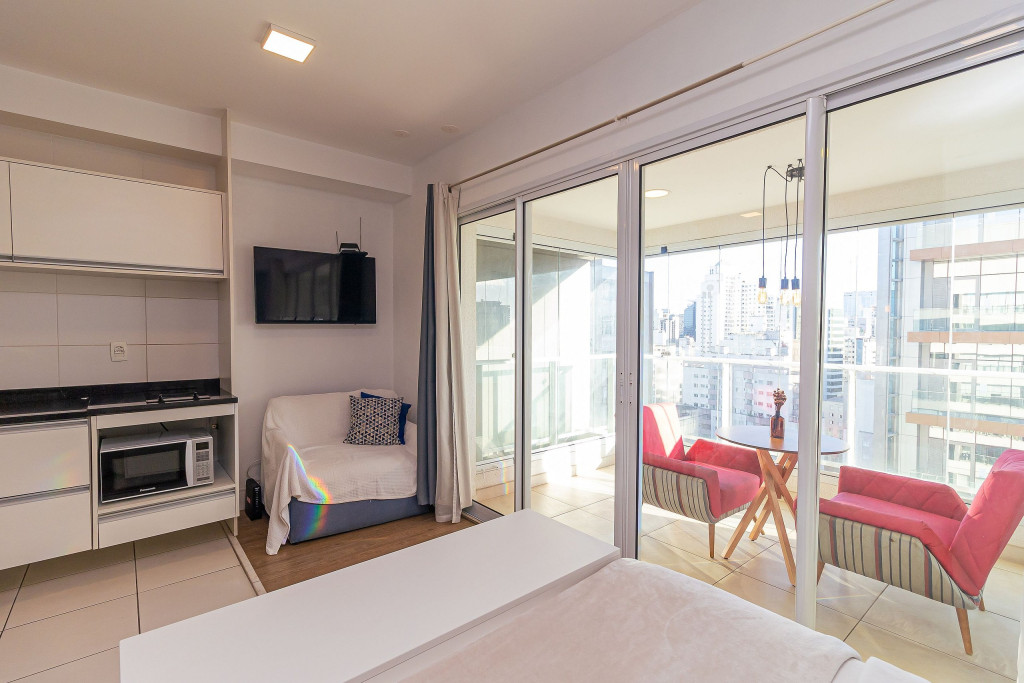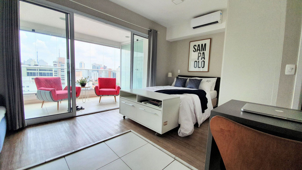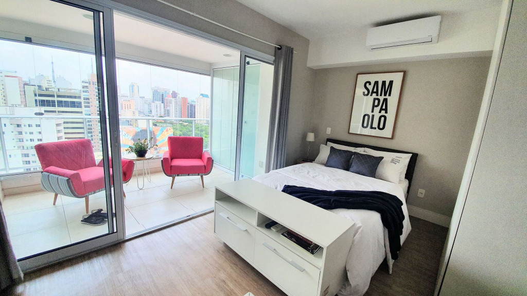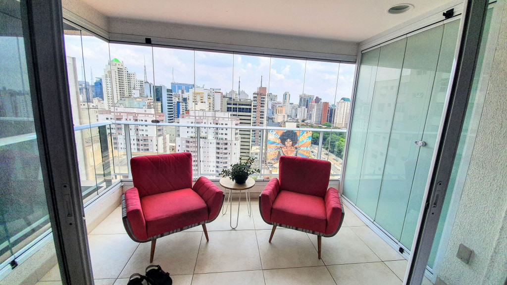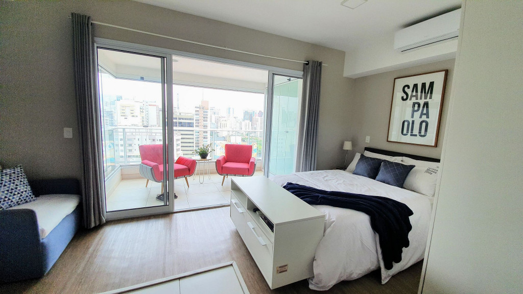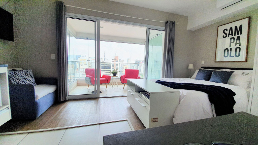 O estúdio foi recém reformado e está situado no 20°, ocasinando uma vista maravilhosa da cidade, além de ter uma decoração toda pensada pra trazer aconchego ao espaço. O mesmo conta com um ambiente otimizado, com cozinha completa, varanda com área de jantar, um sofá super confortável, possui AC e TV. Edifício com excelente estrutura: maior piscina suspensa da América Latina, academia, garagem, lavanderia (pago à parte) e fica apenas á 10min caminhando da Avenida Paulista.