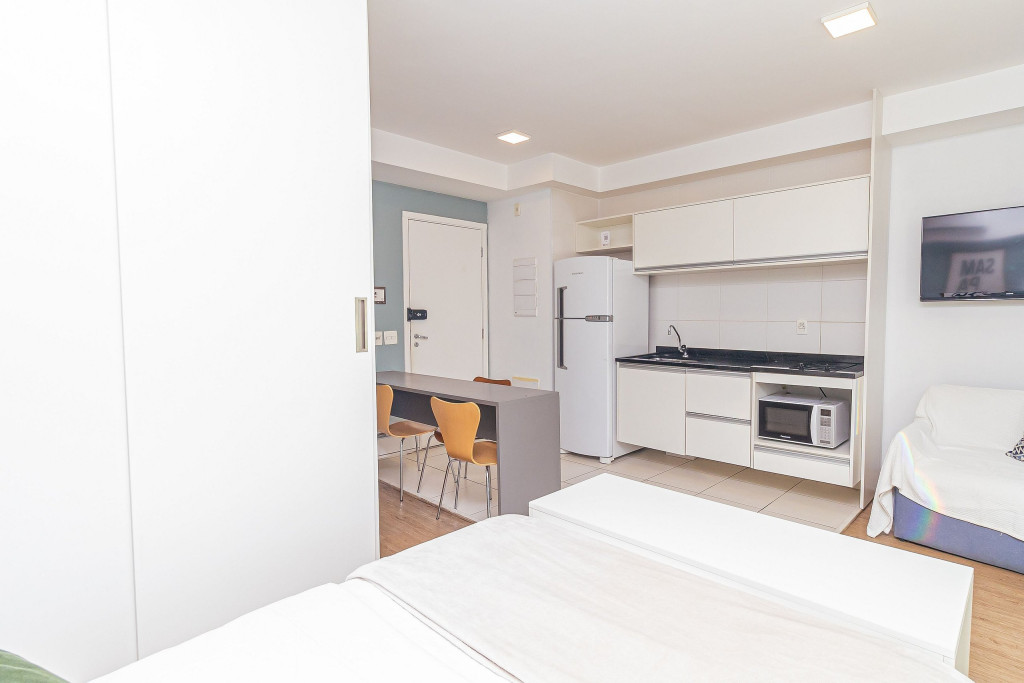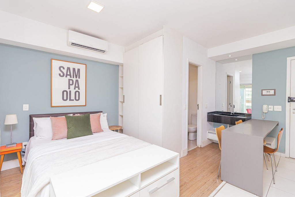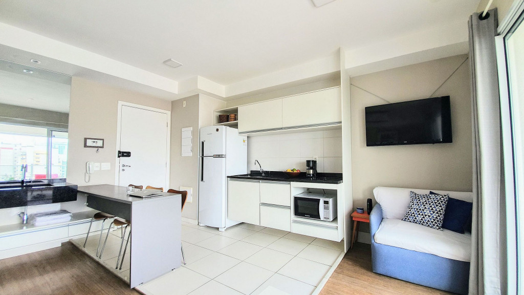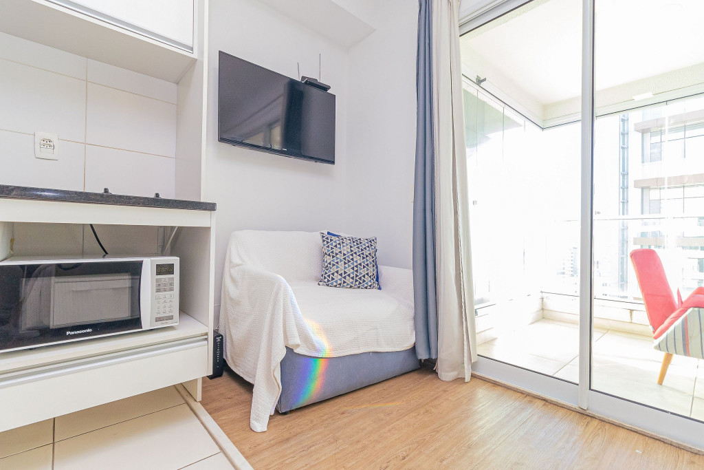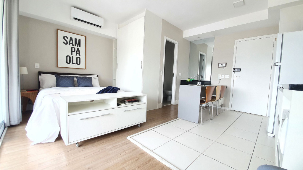 O estúdio foi recém reformado e está situado no 20°, ocasinando uma vista maravilhosa da cidade, além de ter uma decoração toda pensada pra trazer aconchego ao espaço. O mesmo conta com um ambiente otimizado, com cozinha completa, varanda com área de jantar, um sofá super confortável, possui AC e TV. Edifício com excelente estrutura: maior piscina suspensa da América Latina, academia, garagem, lavanderia (pago à parte) e fica apenas á 10min caminhando da Avenida Paulista.