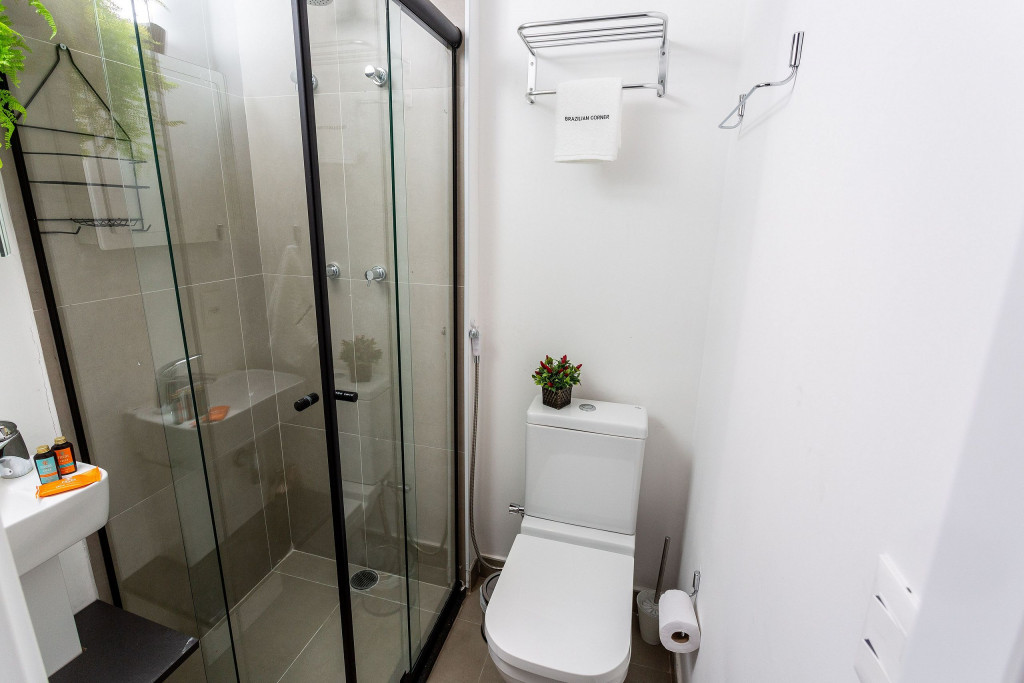 ESTÚDIO: - Smart TV de 43 polegadas: Relaxe e desfrute de uma experiência audiovisual incrível em nossa SmarTV de alta definição. Assista aos seus programas favoritos ou aproveite uma noite de cinema com conforto e qualidade. - Cama de Casal: Relaxe e recarregue suas energias em uma cama de casal confortável. Garantimos noites tranquilas e revigorantes para que você possa aproveitar ao máximo cada segundo de seu sono. - Mesa de Trabalho: Seja para trabalhar remotamente, estudar ou apenas navegar na internet, nossa mesa de trabalho proporciona um espaço confortável e funcional. Mantenha-se produtivo durante suas férias ou viagens de negócios. - Internet Ultra-Veloz: Mantenha-se conectado com o mundo durante sua estadia. Oferecemos acesso à internet de alta velocidade para que você possa compartilhar suas experiências e manter-se atualizado em todos os ambientes. - Cortinas Blackout: Uma boa noite de sono é essencial. Por isso, em todos os quartos da nossa locação, você encontrará cortinas blackout, garantindo um ambiente escuro e silencioso para um descanso revigorante. - Ar condicionado: Mantenha-se fresco e confortável mesmo nos dias mais quentes. Nosso imóvel conta com ar condicionado para garantir uma temperatura agradável em todas as áreas. - Guarda-Roupa: Nosso imóvel oferece um guarda-roupa amplo, permitindo que você organize suas roupas e pertences com facilidade. Desfaça as malas e sinta-se verdadeiramente em casa. - Fechadura Digital: Priorizamos sua segurança e tranquilidade. Nossa locação conta com uma fechadura digital de alta tecnologia, proporcionando praticidade e evitando a preocupação com chaves. COZINHA: Nossa cozinha está muito bem equipada. Prepare deliciosas refeições na nossa cozinha completa e moderna. Equipada com todos os utensílios e eletrodomésticos necessários, você terá liberdade para explorar suas habilidades culinárias. - Taças de vinho: Brinde momentos memoráveis com taças de vinho prontas para receber suas celebrações. - Máquina Nespresso: Desperte seus sentidos com uma xícara de café fresco todas as manhãs. Em nossa locação, disponibilizamos uma máquina Nespresso para que você possa apreciar a sua bebida preferida. No entanto, é necessário trazer suas próprias cápsulas de café, pois não fornecemos. - Microondas: Prepare suas refeições com praticidade e rapidez, tendo à disposição um micro-ondas moderno e funcional. - Fogão: Sinta-se em casa na nossa cozinha, completa com um moderno fogão, proporcionando a flexibilidade para preparar suas refeições favoritas. Seja um mestre culinário ou alguém que gosta de experimentar novos sabores, você terá tudo o que precisa à sua disposição. - Filtro de Água: Pensando na sua saúde e bem-estar, nossa locação por temporada possui um filtro de água, garantindo que você tenha acesso a água limpa e pura durante toda a sua estadia. BANHEIRO: - Secador de Cabelo: Para sua conveniência, disponibilizamos um secador de cabelo de qualidade em nosso imóvel. Dessa forma, você não precisa se preocupar em trazer o seu, permitindo que você viaje mais leve e confortável. - Chuveiro à Gás: Proporcionando conforto em todos os detalhes, nossos chuveiros são abastecidos com sistema a gás, garantindo um banho quente e relaxante em qualquer momento do dia. - Academia: Se manter ativo e saudável é importante para você, nossa academia moderna está pronta para atender às suas necessidades. Equipada com uma variedade de máquinas de qualidade, você poderá manter sua rotina de exercícios mesmo durante as férias. Mantenha-se em forma e cheio de energia durante toda a sua estadia. - Piscina: Mergulhe, relaxe e aproveite a nossa piscina, oferecendo momentos de alegria e descontração. - Coworking: Se você está viajando a negócios ou precisa de um espaço tranquilo para trabalhar, nosso coworking é ideal para você. Equipado com estações de trabalho confortáveis, internet de alta velocidade e ambiente silencioso, você pode manter sua produtividade enquanto desfruta da comodidade de um espaço de trabalho compartilhado. ADMINISTRAÇÃO DO IMÓVEL: O Imóvel é administrado pela Brazilian Corner, uma empresa nacional que oferece aos seus clientes, que viajam a lazer ou negócios, a experiência de locar imóveis únicos durante uma temporada. As residências são planejadas para prover grande conforto. Nosso escritório fica no bairro Vila Madalena em São Paulo. Desde 2018, a Brazilian Corner é pioneira em seu ramo, pois além de proporcionar imóveis bem estruturados, também é responsável por toda a logística e suprimentos básicos que compõe cada uma de suas residências, o que as torna extremamente funcionais. Nosso grande diferencial é a boa comunicação e a seriedade com que atuamos para resolver qualquer entrave que possa acontecer antes, durante, e/ou após a estadia de nossos clientes. Nossos colaboradores são treinados e têm as ferramentas necessárias para proporcionar um excelente nível de serviço. Os apartamentos e casas são limpos por nossas equipes especializada, a nossa roupa de cama e banho são lavadas e higienizadas em lavanderias profissionais. Mantemos o profissionalismo em tudo o que fazemos para, dessa forma, garantir a tranquilidade e confiança de nossos clientes. COMPROMISSO COM A INCLUSÃO: Na Brazilian Corner, acreditamos que a diversidade é o que torna o mundo um lugar incrível para explorar. Celebramos a pluralidade de culturas, identidades e experiências de vida. Para a comunidade LGBTQIA+, este é um lar longe de casa, onde você pode ser autêntico e verdadeiro consigo mesmo, onde a diversidade é celebrada e a igualdade é nossa prioridade. Sabemos que viajar nem sempre é fácil, e queremos tornar a sua estadia o mais confortável possível. Não importa se você é um viajante solo, um casal ou um grupo de amigos, este espaço foi projetado com amor para receber a todos, independentemente d