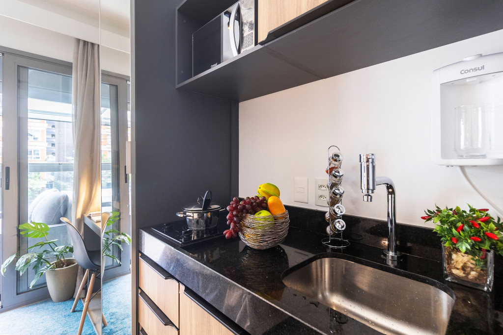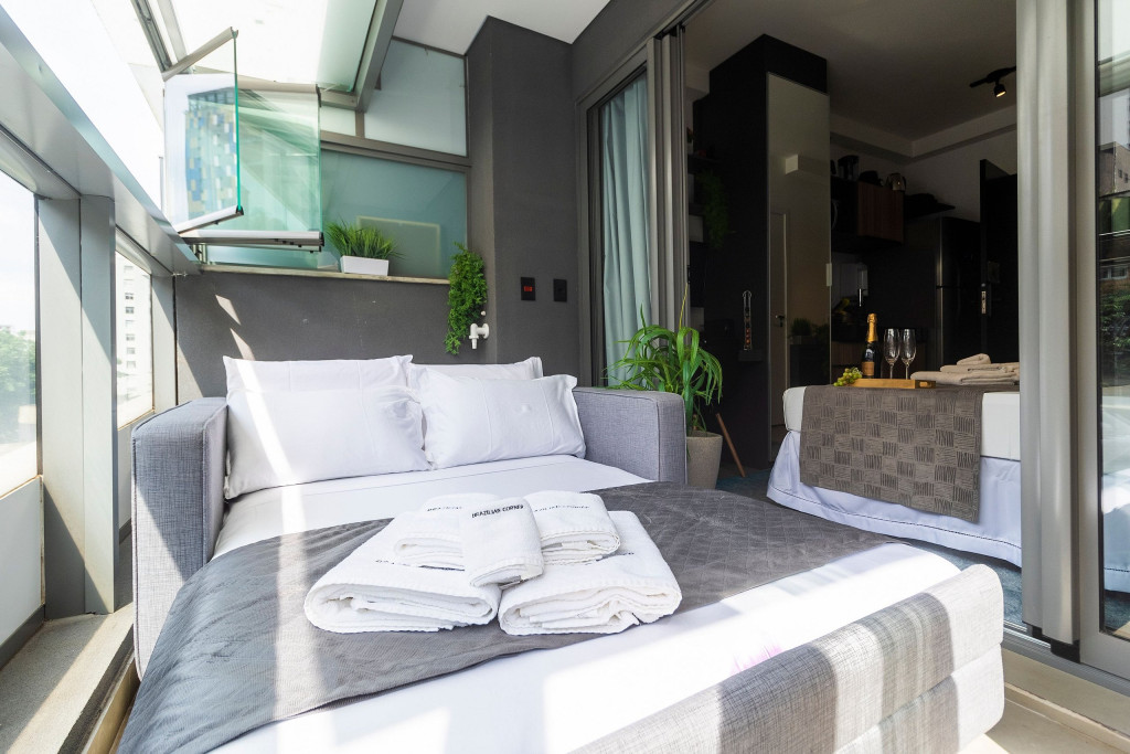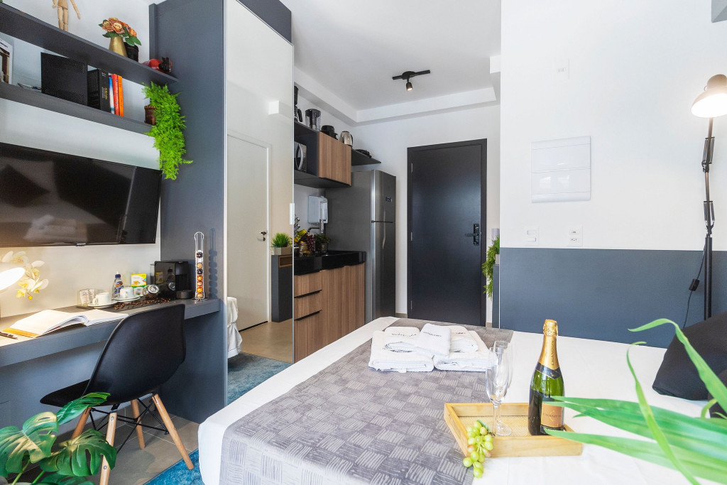 ESTÚDIO: - Varanda com vista para a cidade: Desfrute de uma paisagem deslumbrante de São Paulo. Imagine acordar todas as manhãs e aproveitar de sua varanda a beleza desta cidade. - Smart TV de 43 polegadas: Relaxe e desfrute de uma experiência audiovisual incrível em nossa SmarTV de alta definição. Assista aos seus programas favoritos ou aproveite uma noite de cinema com conforto e qualidade. - Cama de Casal: Relaxe e recarregue suas energias em uma cama de casal confortável. Garantimos noites tranquilas e revigorantes para que você possa aproveitar ao máximo cada segundo de seu sono. - Sofá-cama: Com um simples movimento, o sofá-cama se converte em uma superfície ampla e agradável para uma noite de sono tranquila. Seus mecanismos de abertura e fechamento são fáceis de usar, permitindo uma transição suave entre as duas funções, é uma opção prática para acomodar vocês durante a noite. - Internet Ultra-Veloz: Mantenha-se conectado com o mundo durante sua estadia. Oferecemos acesso à internet de alta velocidade para que você possa compartilhar suas experiências e manter-se atualizado em todos os ambientes. - Cortinas Blackout nos quartos: Garanta um descanso tranquilo e revigorante. Nossos quartos estão equipados com cortinas blackout, permitindo que você controle a luminosidade e desfrute de um ambiente tranquilo. - Ar condicionado: Mantenha-se fresco e confortável mesmo nos dias mais quentes. Nosso imóvel conta com ar condicionado para garantir uma temperatura agradável em todas as áreas. - Mesa de Jantar: Compartilhe momentos especiais, proporcionando um ambiente perfeito para refeições memoráveis. - Fechadura Digital: Priorizamos sua segurança e tranquilidade. Nossa locação conta com uma fechadura digital de alta tecnologia, proporcionando praticidade e evitando a preocupação com chaves. COZINHA: Cozinha muito bem equipada: Prepare deliciosas refeições na nossa cozinha completa e moderna. Equipada com todos os utensílios e eletrodomésticos necessários, você terá liberdade para explorar suas habilidades culinárias. - Taças de vinho: Brinde momentos memoráveis com taças de vinho prontas para receber suas celebrações. - Fogão: Sinta-se em casa na nossa cozinha, completa com um moderno fogão, proporcionando a flexibilidade para preparar suas refeições favoritas. Seja um mestre culinário ou alguém que gosta de experimentar novos sabores, você terá tudo o que precisa à sua disposição. - Máquina Nespresso: Desperte seus sentidos com uma xícara de café fresco todas as manhãs. Em nossa locação, disponibilizamos uma máquina Nespresso para que você possa apreciar a sua bebida preferida. No entanto, é necessário trazer suas próprias cápsulas de café, pois não fornecemos. - Microondas: Prepare suas refeições com praticidade e rapidez, tendo à disposição um micro-ondas moderno e funcional. - Filtro de Água: Pensando na sua saúde e bem-estar, nossa locação por temporada possui um filtro de água, garantindo que você tenha acesso a água limpa e pura durante toda a sua estadia. BANHEIRO: - Chuveiro à Gás: Proporcionando conforto em todos os detalhes, nossos chuveiros são abastecidos com sistema à gás, garantindo um banho quente e relaxante em qualquer momento do dia. - Ducha Higiênica: Desfrute do conforto e praticidade de uma ducha higiênica em nosso imóvel. Um toque de modernidade e higiene para garantir que sua estadia seja ainda mais agradável. ÁREAS COMUNS: - Academia: Se manter ativo e saudável é importante para você, nossa academia moderna está pronta para atender às suas necessidades. Equipada com uma variedade de máquinas de qualidade, você poderá manter sua rotina de exercícios mesmo durante as férias. Mantenha-se em forma e cheio de energia durante toda a sua estadia. - Piscina: Mergulhe, relaxe e aproveite a nossa piscina, oferecendo momentos de alegria e descontração. - Coworking: Se você está viajando a negócios ou precisa de um espaço tranquilo para trabalhar, nosso coworking é ideal para você. Equipado com estações de trabalho confortáveis, internet de alta velocidade e ambiente silencioso, você pode manter sua produtividade enquanto desfruta da comodidade de um espaço de trabalho compartilhado. ADMINISTRAÇÃO DO IMÓVEL: O Imóvel é administrado pela Brazilian Corner, uma empresa nacional que oferece aos seus clientes, que viajam a lazer ou negócios, a experiência de locar imóveis únicos durante uma temporada. As residências são planejadas para prover grande conforto. Nosso escritório fica no bairro Vila Madalena em São Paulo. Desde 2018, a Brazilian Corner é pioneira em seu ramo, pois além de proporcionar imóveis bem estruturados, também é responsável por toda a logística e suprimentos básicos que compõe cada uma de suas residências, o que as torna extremamente funcionais. Nosso grande diferencial é a boa comunicação e a seriedade com que atuamos para resolver qualquer entrave que possa acontecer antes, durante, e/ou após a estadia de nossos clientes. Nossos colaboradores são treinados e têm as ferramentas necessárias para proporcionar um excelente nível de serviço. Os apartamentos e casas são limpos por nossas equipes especializada, a nossa roupa de cama e banho são lavadas e higienizadas em lavanderias profissionais. Mantemos o profissionalismo em tudo o que fazemos para, dessa forma, garantir a tranquilidade e confiança de nossos clientes. COMPROMISSO COM A INCLUSÃO: Na Brazilian Corner, acreditamos que a diversidade é o que torna o mundo um lugar incrível para explorar. Celebramos a pluralidade de culturas, identidades e experiências de vida. Para a comunidade LGBTQIA+, este é um lar longe de casa, onde você pode ser autêntico e verdadeiro consigo mesmo, onde a diversidade é celebrada e a igualdade é nossa prioridade. Sabemos que viajar nem sempre é fácil, e queremos tornar a sua estadia o mais confortável possível.
