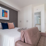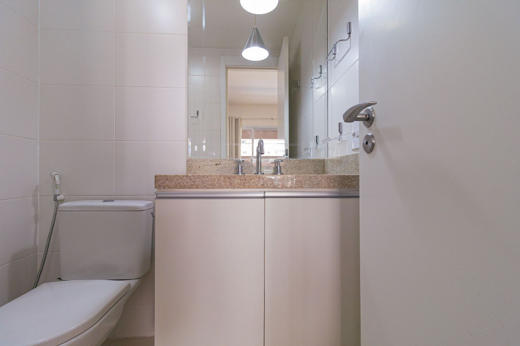 O apartamento conta com fechamento de vidros na varanda e também porta de isolamento no quarto, minimizando ao máximo o potencial barulho.