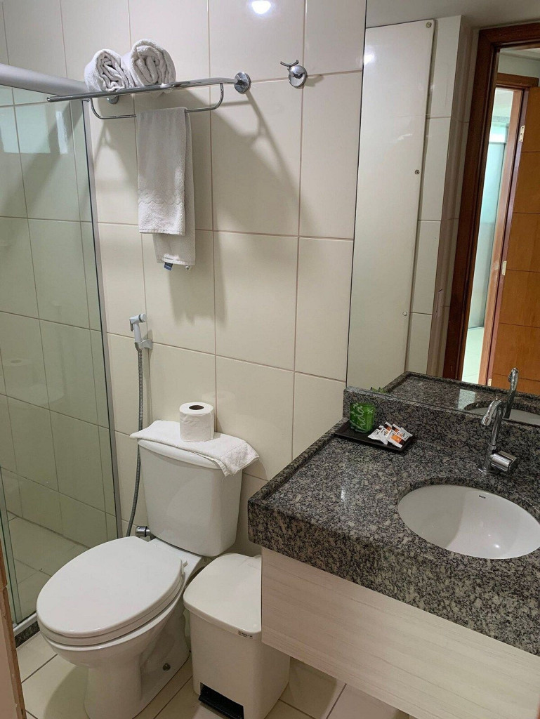 O Prédio possui estacionamento próprio que pode ser acessado pela rua de trás, após concluído o cadastro biométrico do hóspede.