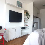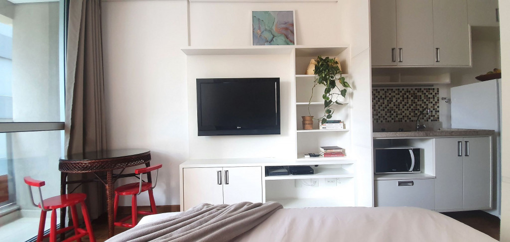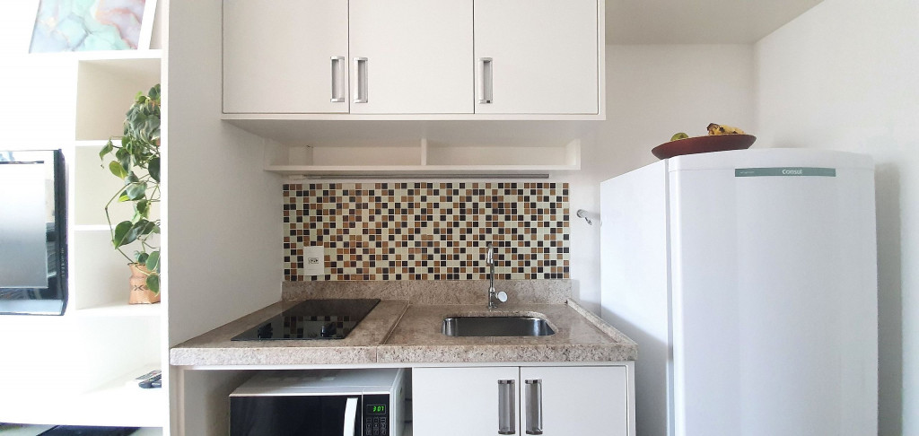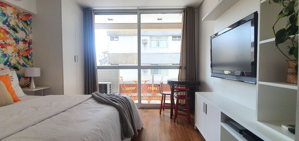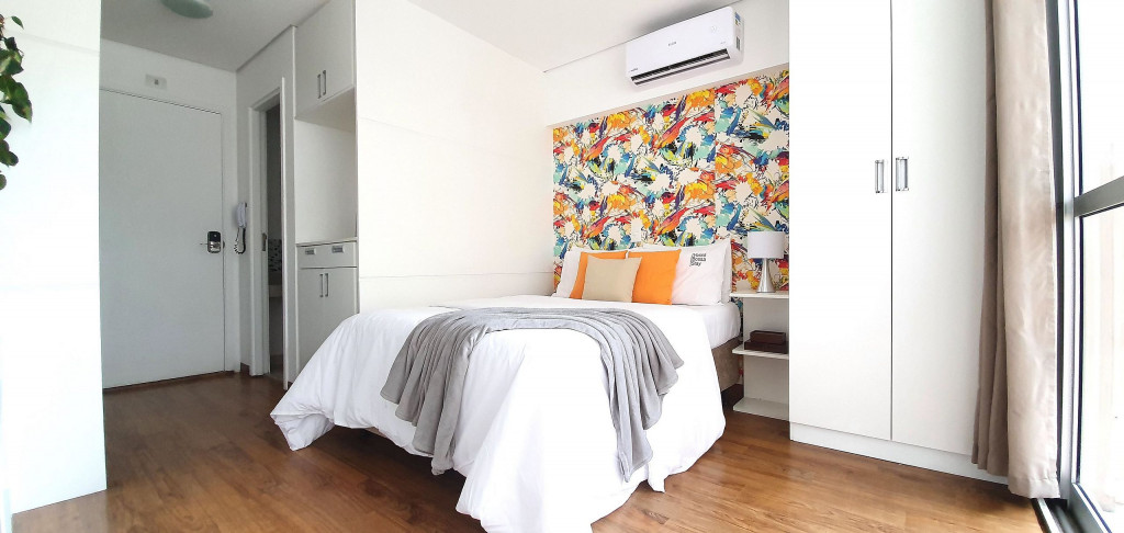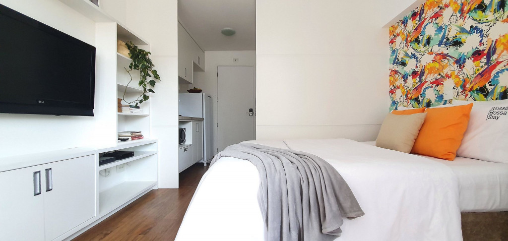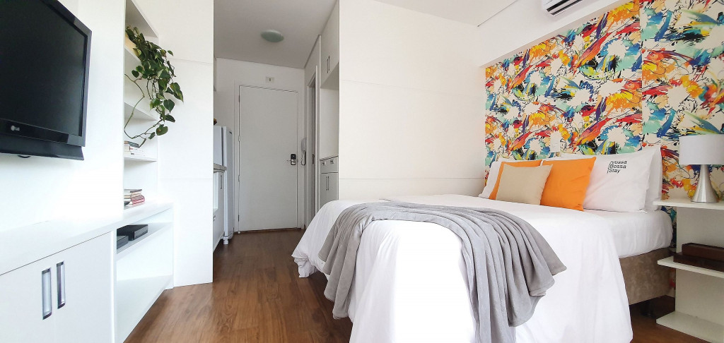 Estúdio privativo de 22 m2, mobiliado, com cozinha, banheiro, ar condicionado e varanda. Está localizado em prédio moderno com piscina, academia, lavanderia (paga a parte), vaga de garagem, portaria 24 horas e situado proximo da Av Paulista, bem na famosa Rua Augusta.
