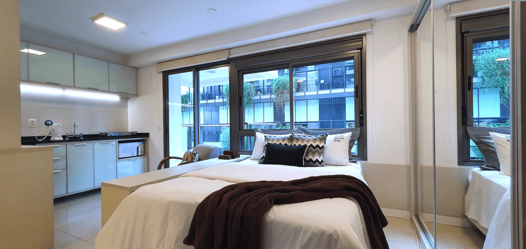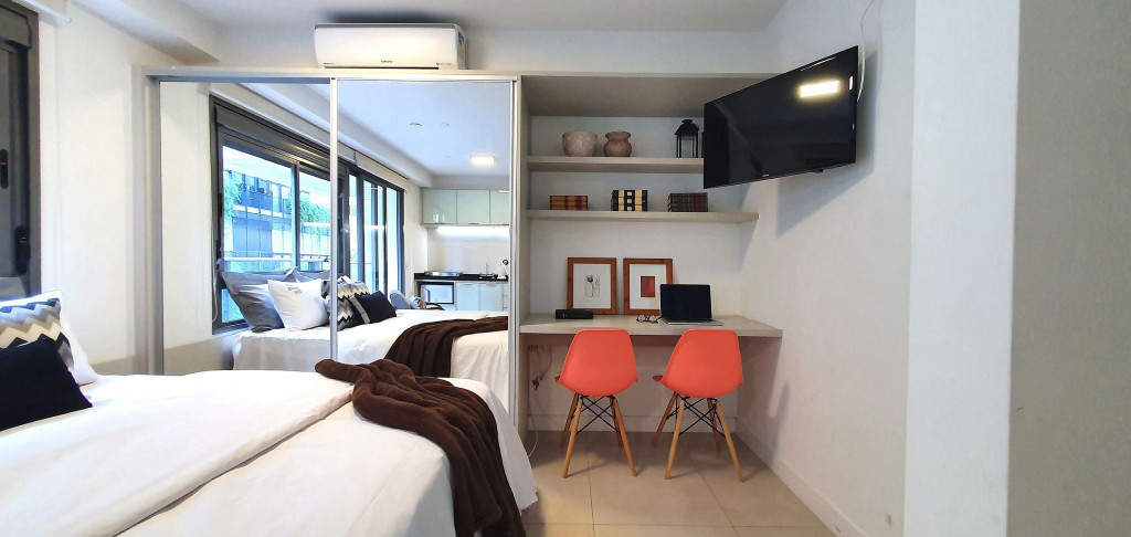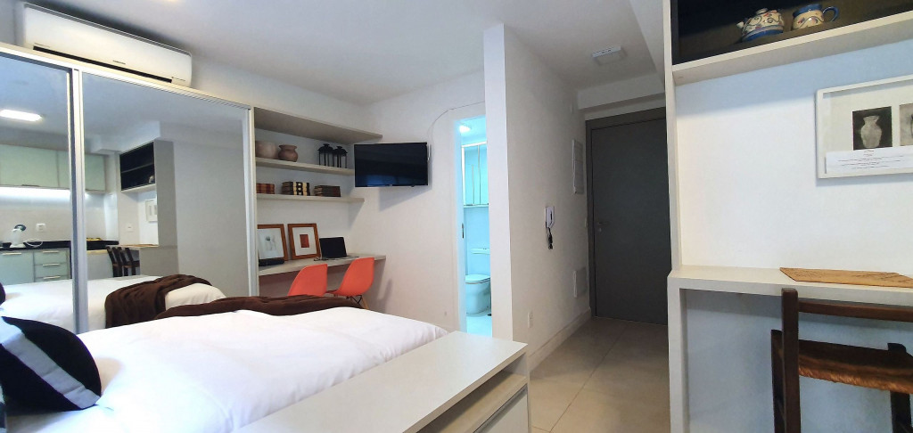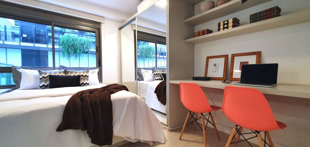 Localizado no coração da vizinhança mais vibrante, boemia, artística e arquitetônica de São Paulo, esse estúdio minimalista tem tudo que precisas para uma estadia perfeita e aconchegante.O studio possui varanda com vista para o Ed. Une, cozinha completa com utensílios básicos para culinária do dia a dia, ar condicionado, wi-fi, piscina, academia, garagem e portaria 24 horas.